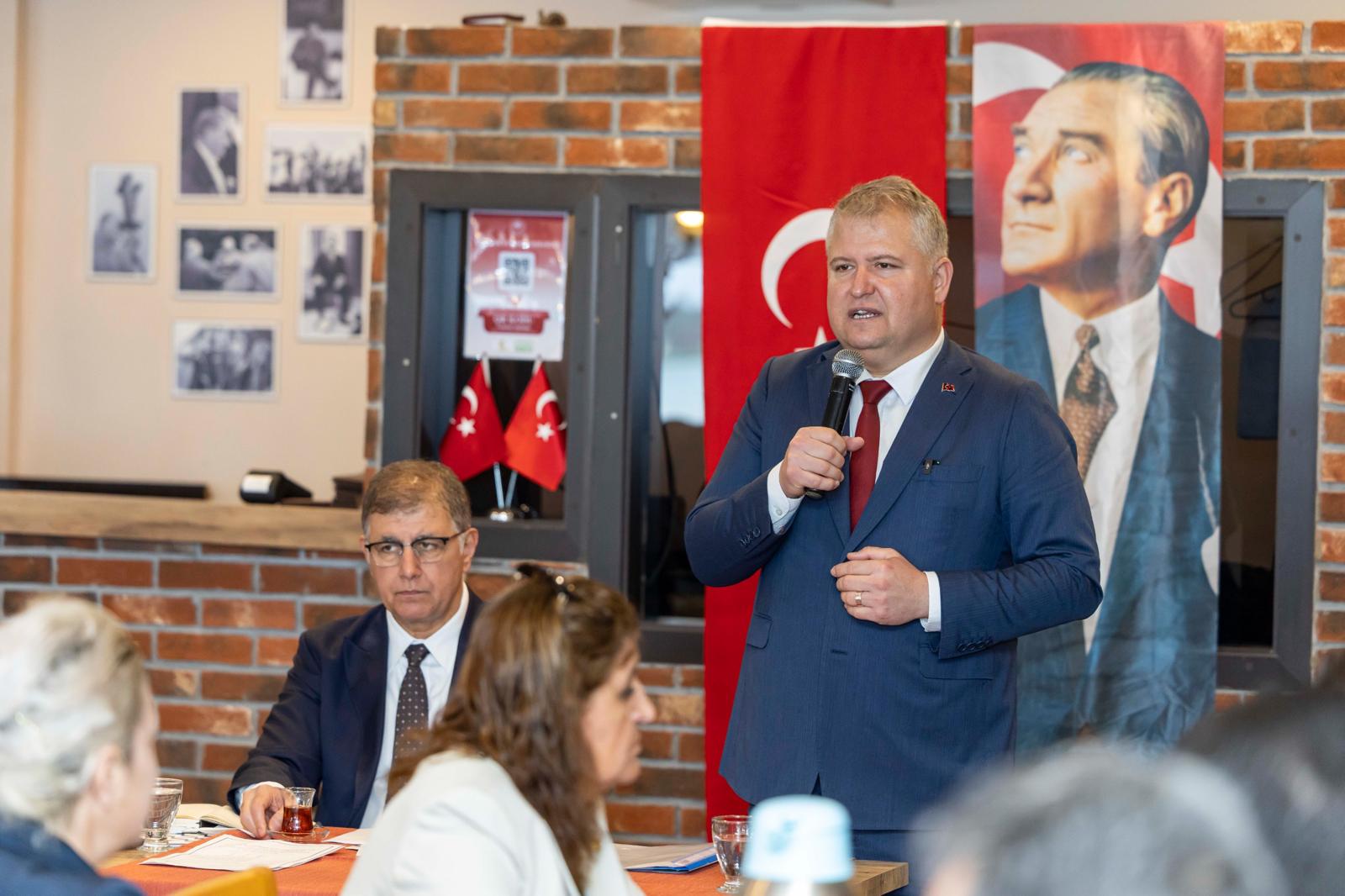 Urla’da muhtarlarla bir araya gelerek talep ve önerilerini dinleyen İzmir Büyükşehir Belediye Başkanı Dr. Cemil Tugay, “Biz bütün gücümüzle, imkânımızla hizmet etmek için buradayız. Bundan sonra da böyle olacak. Bazen bilerek önümüzü kapatacaklar ama ne olursa olsun çalışmaya devam edeceğiz” dedi.