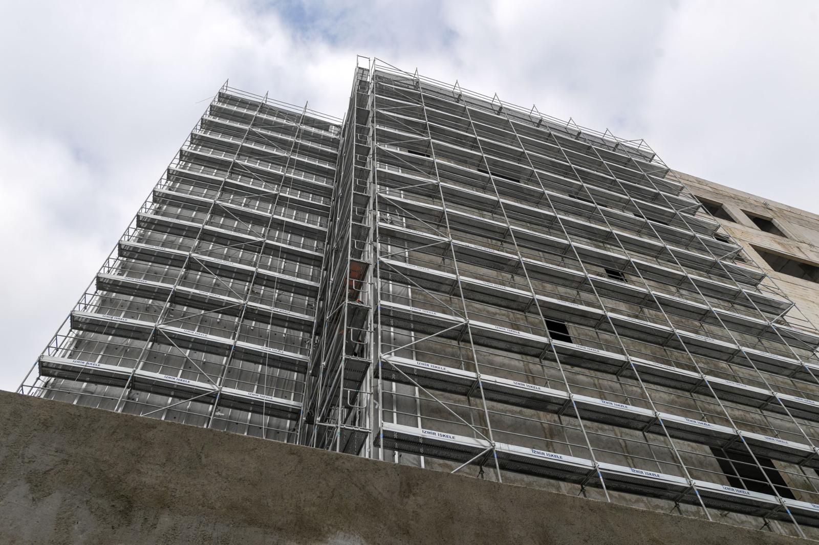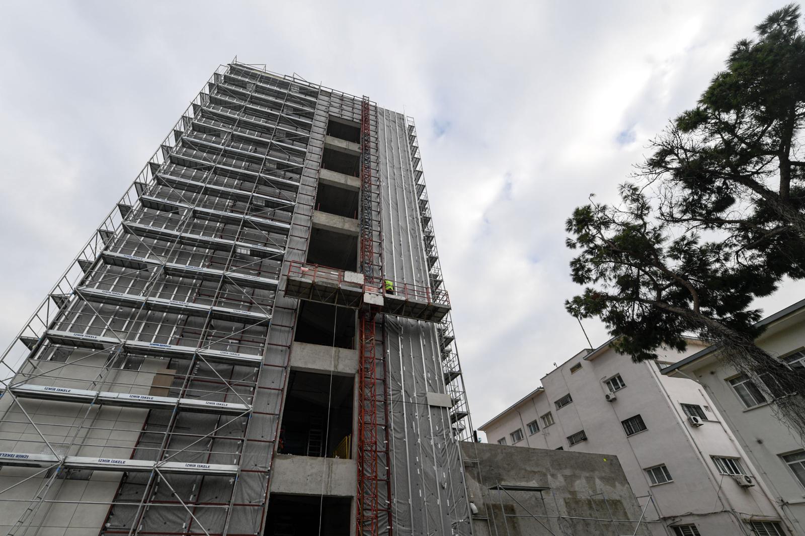 Türkiye’nin ilk ve tek belediye hastanesi İzmir Büyükşehir Belediyesi Eşrefpaşa Hastanesi’nin yeni ek hizmet binasında kaba inşaat tamamlandı, ince işçilik aşamasına geçildi. İzmir Büyükşehir Belediyesi tarafından 7 gün 24 saat sürdürülen çalışmalarla bina en kısa sürede hizmete açılacak. Mevcut yapıya köprüyle bağlanacak modern tesis, İzmir’e güçlü bir sağlık altyapısı kazandıracak.