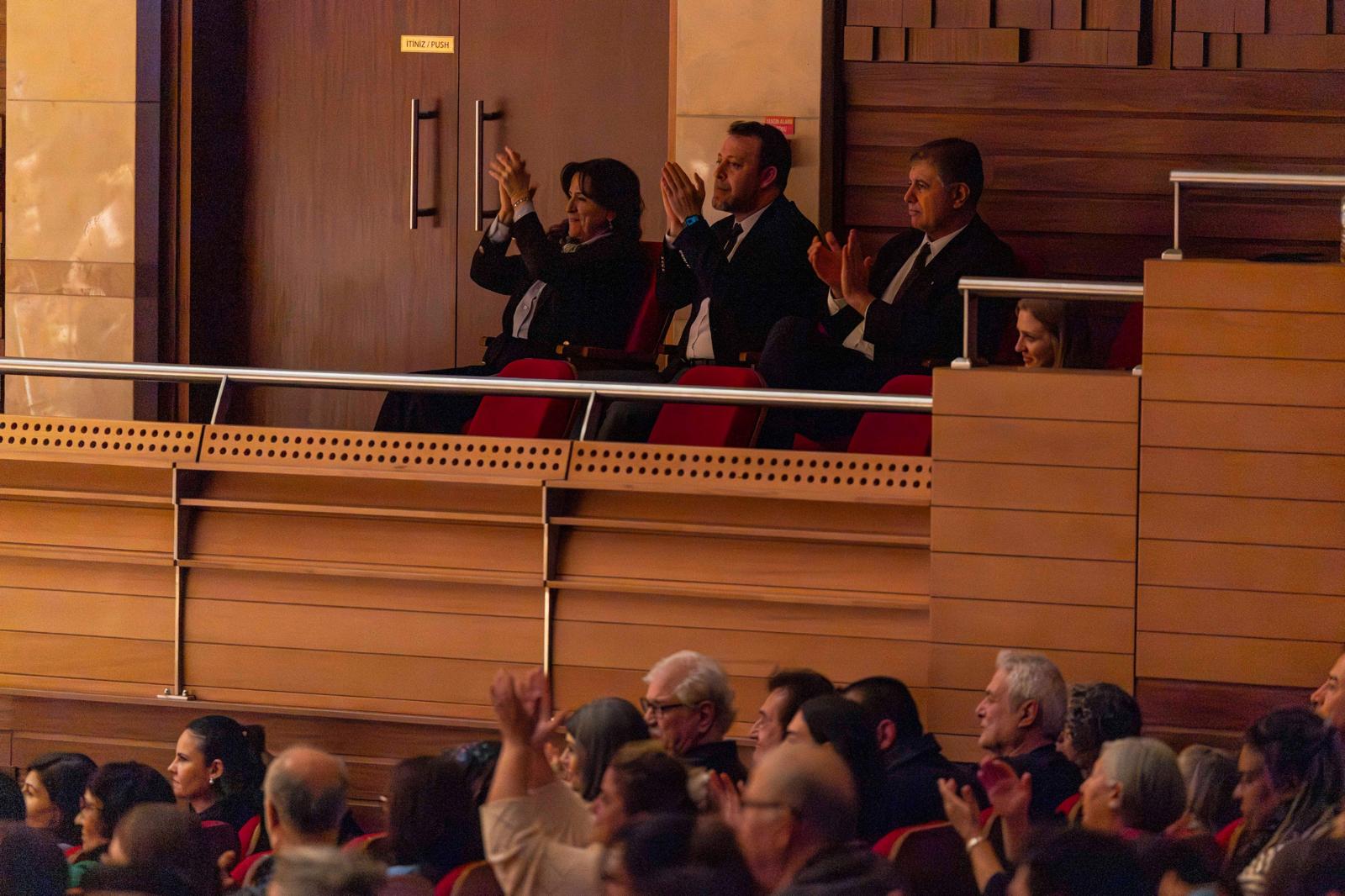 İzmir Oda Orkestrası, Ahmed Adnan Saygun Sanat Merkezi’nde klasik batı müziğinin seçkin eserlerini sanatseverlerle buluşturdu. Dünyaca ünlü şef Howard Griffiths’in yönettiği, solist olarak viyolonsel sanatçısı Dorukhan Doruk’un sahne aldığı konseri İzmir Büyükşehir Belediye Başkanı Dr. Cemil Tugay da izledi.