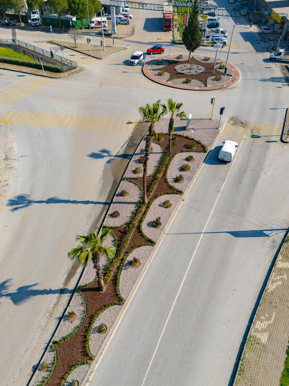 İzmir Büyükşehir Belediyesi, kavşak ve refüjler başta olmak üzere kamusal alanları özgün ve sürdürülebilir peyzaj tasarımlarıyla yeniliyor. Trafik güvenliği gözetilerek hazırlanan düzenlemeler, su tasarrufu sağlayan bitki seçimleriyle kente uzun ömürlü ve estetik bir görünüm kazandırıyor.