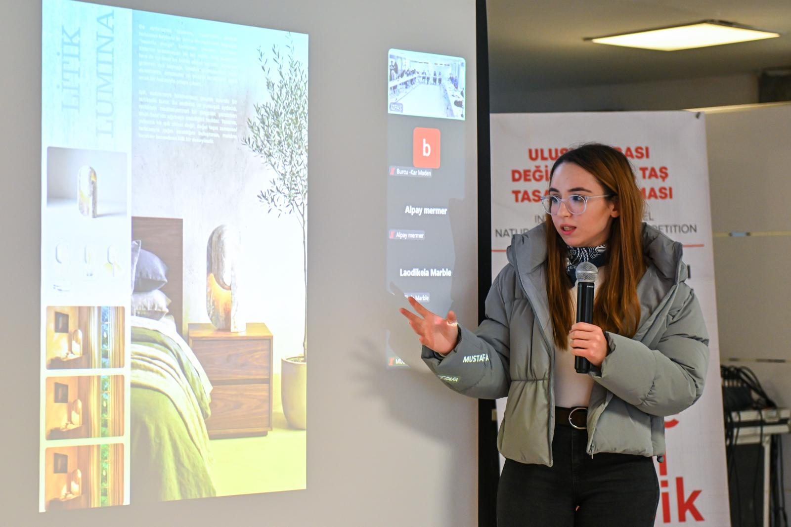 İZFAŞ Genel Müdürü Tuğçe Cumalıoğlu, yarışmanın sektöre sağladığı katkıya dikkat çekerek, “Bu yarışmayı, doğal taş sektörünün geleceğine yapılan stratejik bir yatırım olarak görüyoruz. Yarışma, genç tasarımcıların sektöre adım atmasına imkan sağlarken firmalarımızın üretim kabiliyetini ve katma değerli üretim potansiyelini de görünür hale getiriyor. Bu sürecin oluşmasında emeği olan tüm üretici firmalarımıza, jüri üyelerimize ve öğrencilere teşekkür ediyorum” dedi.