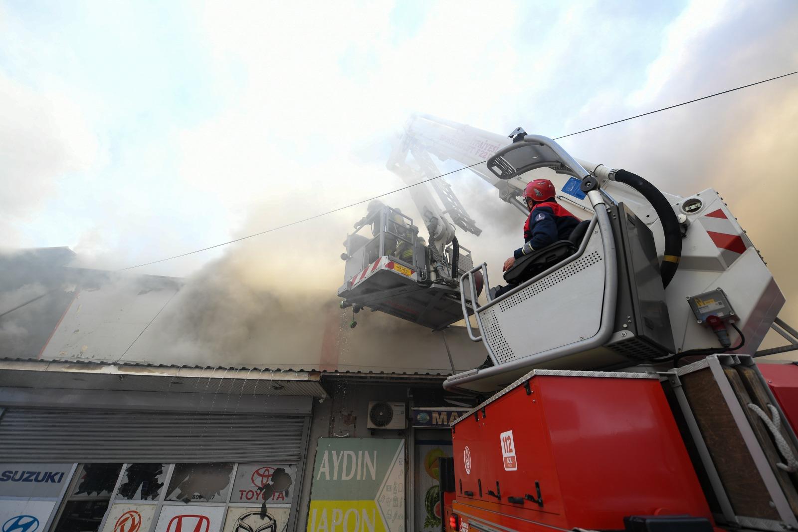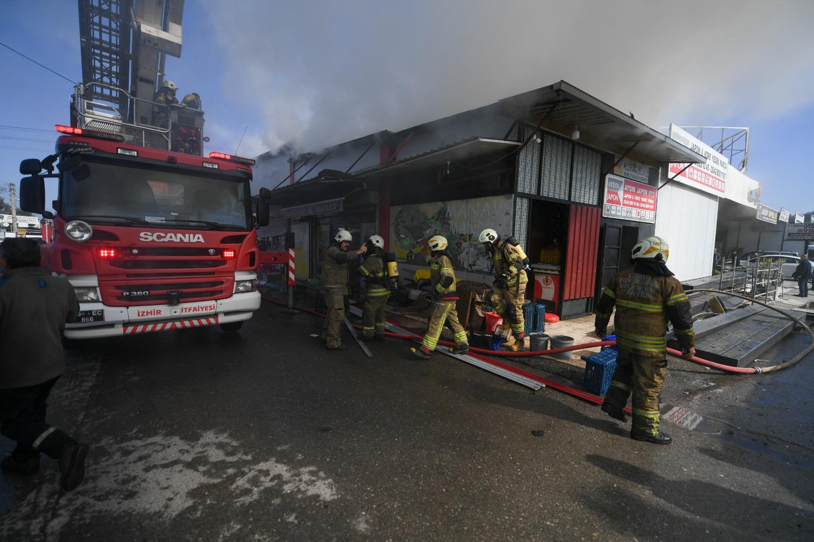 İzmir’in Buca ilçesine bağlı İnönü Mahallesi 6. Sanayi Sitesi’nde bulunan bir otomobil yedek parça dükkanında saat 11.30 sıralarında yangın çıktı. İş yerinden yükselen yoğun duman ve alevleri fark eden çevredekiler, durumu vakit kaybetmeden 112 Acil Çağrı Merkezi’ne bildirdi. İhbar üzerine İzmir Büyükşehir Belediyesi İtfaiye Dairesi Başkanlığı ekipleri bölgeye sevk edildi. 14 araç ve 70 personelle olay yerine ulaşan ekipler, yangına hızla müdahale etti. Henüz çıkış nedeni belirlenemeyen yangın, iş yerinde bulunan yanıcı malzemelerin de etkisiyle büyüyerek bitişik nizamda bulunan iki dükkana daha sıçradı. Sanayi sitesinde paniğe yol açan yangın sırasında zaman zaman patlama sesleri duyuldu. Ekiplerin yoğun ve koordineli çalışması sonucu yangın, yaklaşık iki saat süren müdahalenin ardından kontrol altına alındı. Bölgede soğutma çalışmaları sürerken iş yerlerinde büyük çapta maddi hasar oluştu. Yangında can kaybı ya da yaralanma yaşanmadı.