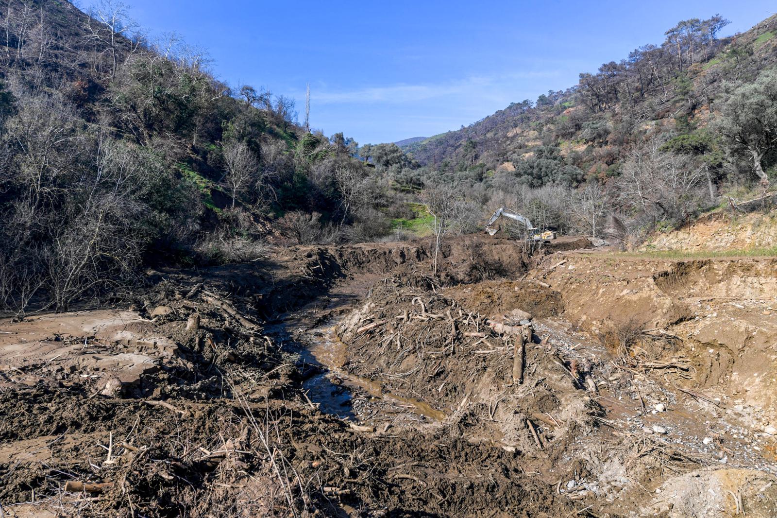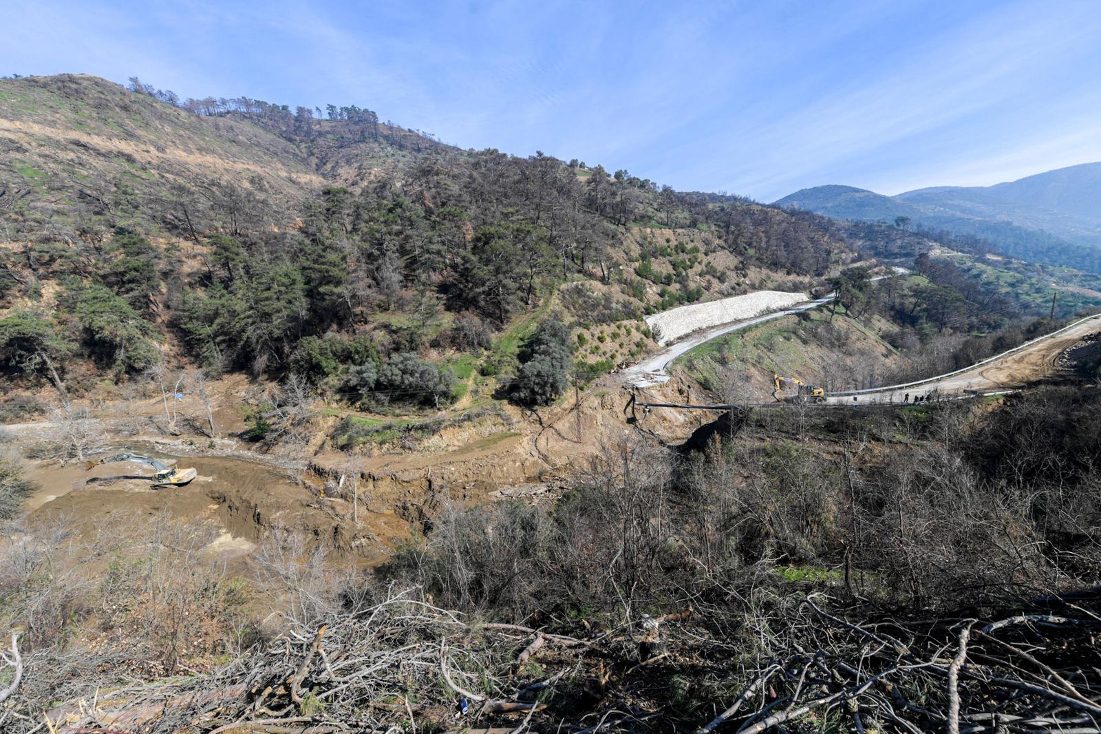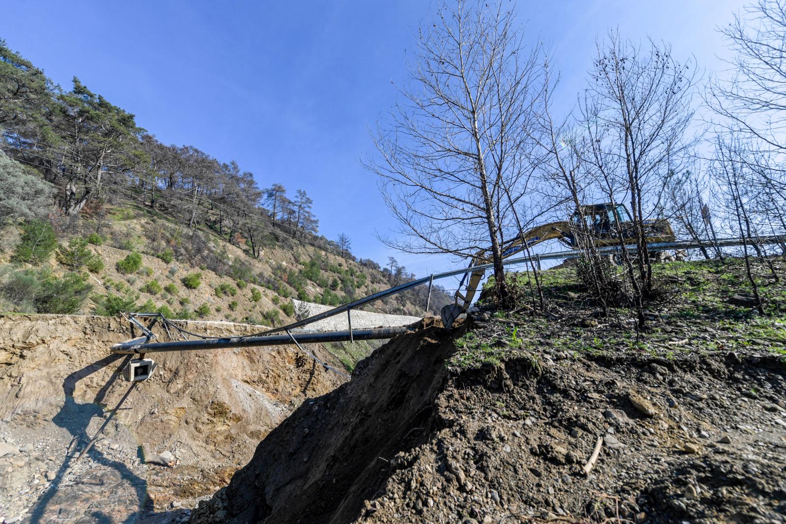 Güney Bölge Yol İşleri Şube Müdürlüğü Yol Formeni Mehmet Alaçam, yaz döneminde ilçede yaşanan orman yangınını hatırlatarak, “Yangın sonrası bölgede orman kesim işçileri tarafından temizlik çalışmaları yapıldı. Ancak kesilen tomrukların yeterince düzenli kaldırılmaması nedeniyle yağmur suyunun akışını sağlayan menfezin girişi tıkanmış. Menfez tıkanınca su yolun üzerinden aşarak zemin yapısında bozulmaya yol açtı. Ayrıca yangın sonrasında orman tabanı oluşmadığı için yağışlarla birlikte toprak kaymaları da meydana geldi” dedi.