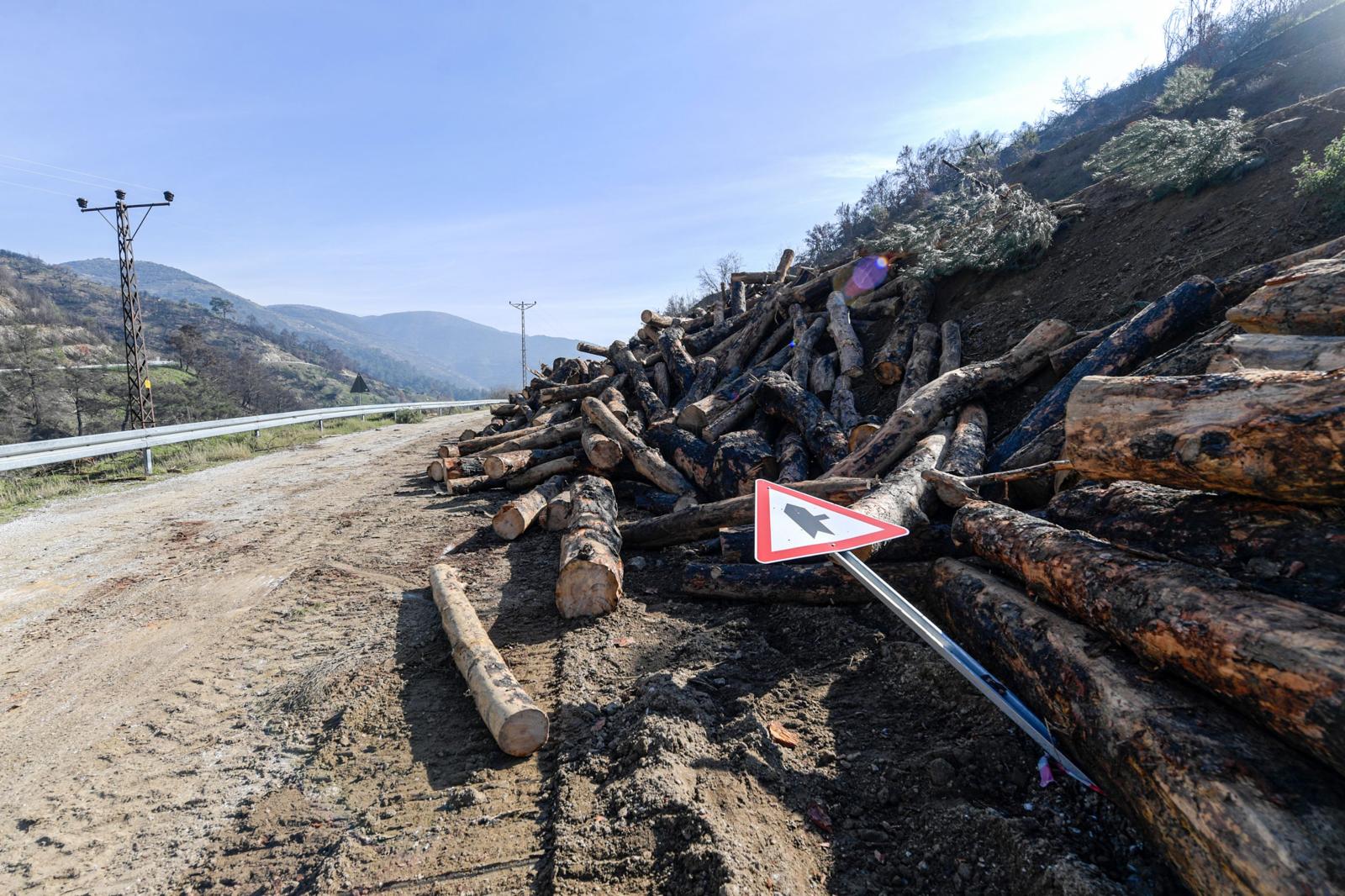 Yangının ardından kesilen ağaç tomrukları menfez girişini tıkadı