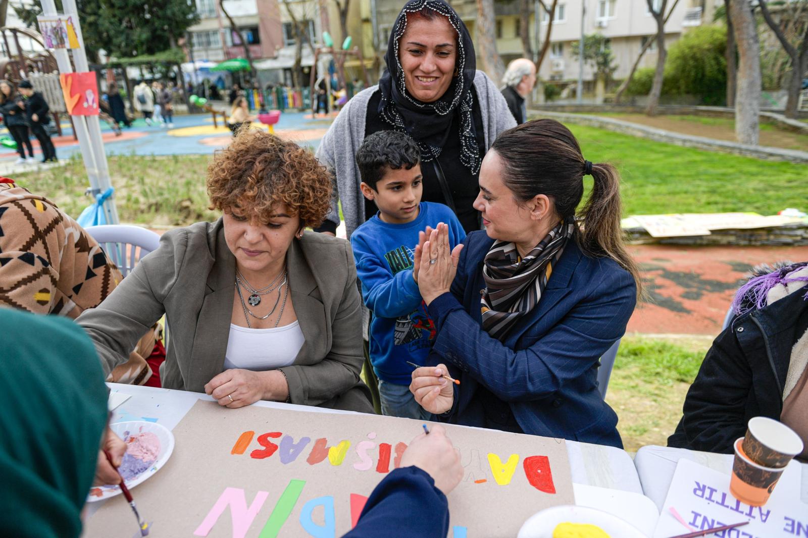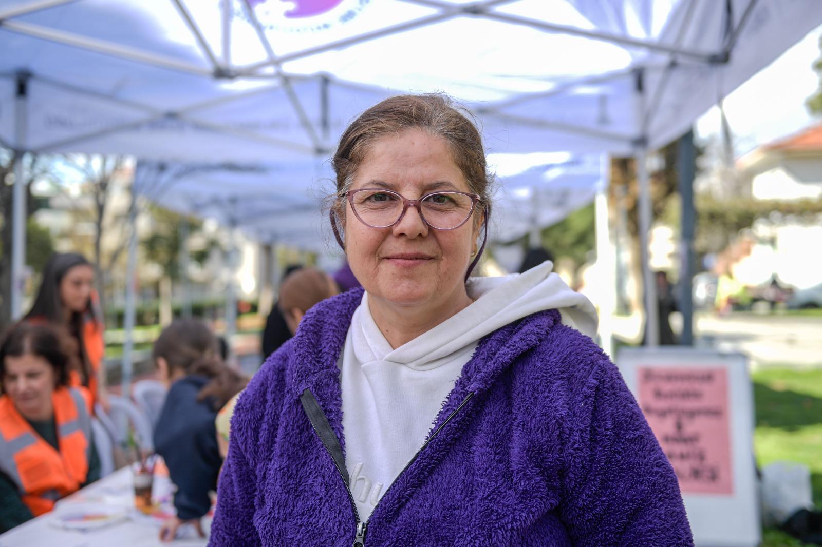 Etkinliğe katılan Fatime İnal “Kadın haklarının savunucusuyuz. Burada pankartları eğlenerek yapıyoruz. Çok mutluyuz, iyi ki böyle etkinlikler var” derken, Sadegül Bozbala da “Kadın sağlığı ile ilgili konuşuyoruz, çocuklar oynuyor. Kadınlarla ilgili pankart yapıyoruz. Çeşit çeşit çiçekler, kelebekler çiziyoruz. Dünya Kadınlar Günü’nü kutluyoruz. Kadına şiddete ‘hayır’ diyoruz. İzmir Büyükşehir Belediyesi’ne etkinlikler için teşekkür ediyoruz” dedi.