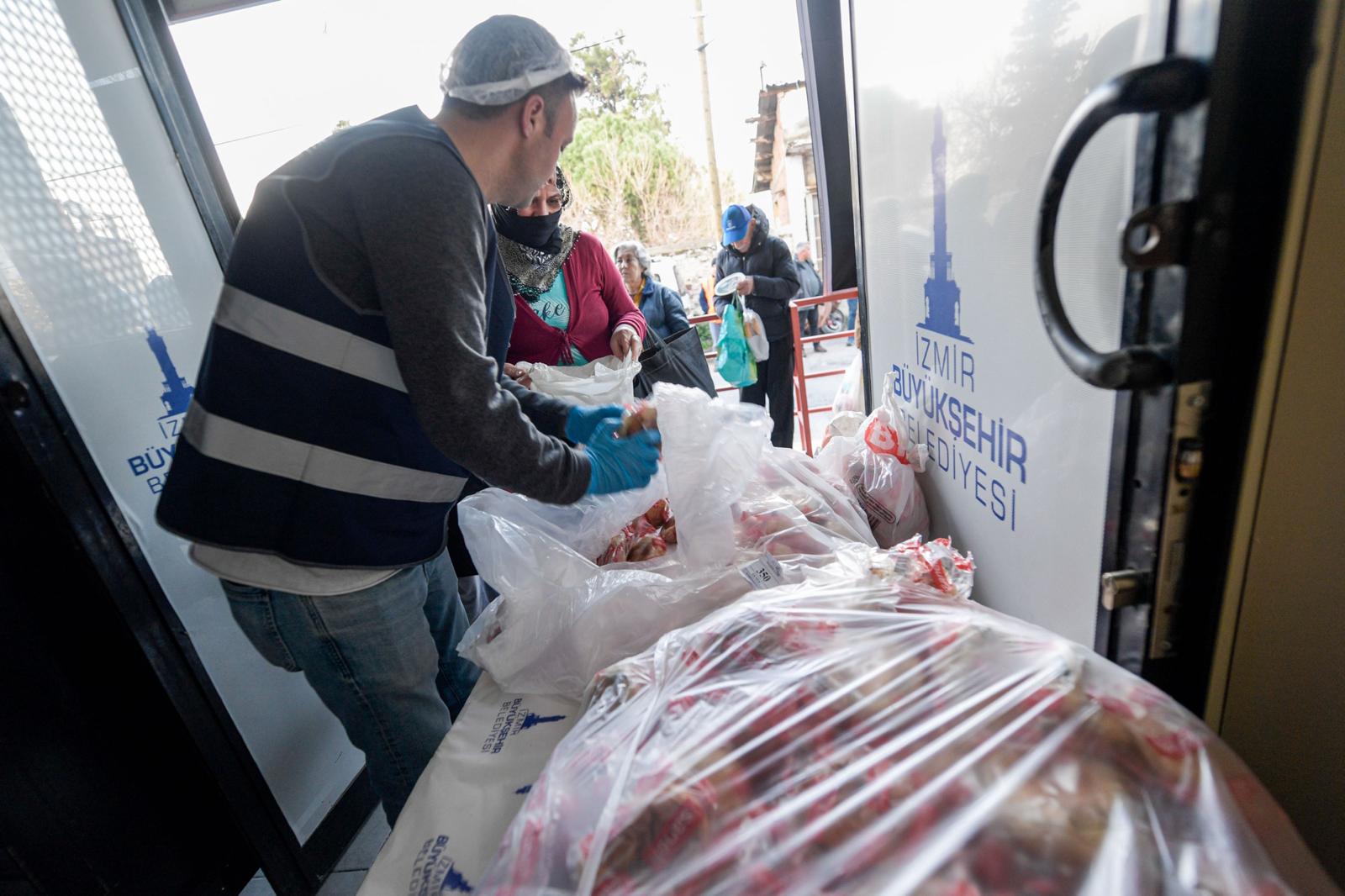 Ramazan ayında birlik ve dayanışma ruhunu büyüten İzmir Büyükşehir Belediyesi, yerinde hizmet anlayışı doğrultusunda kentin farklı noktalarında kurduğu Danışma ve Dayanışma Noktaları aracılığıyla ihtiyaç sahibi hanelere her gün 15 bin kişilik ücretsiz iftar yemeği ulaştırıyor.