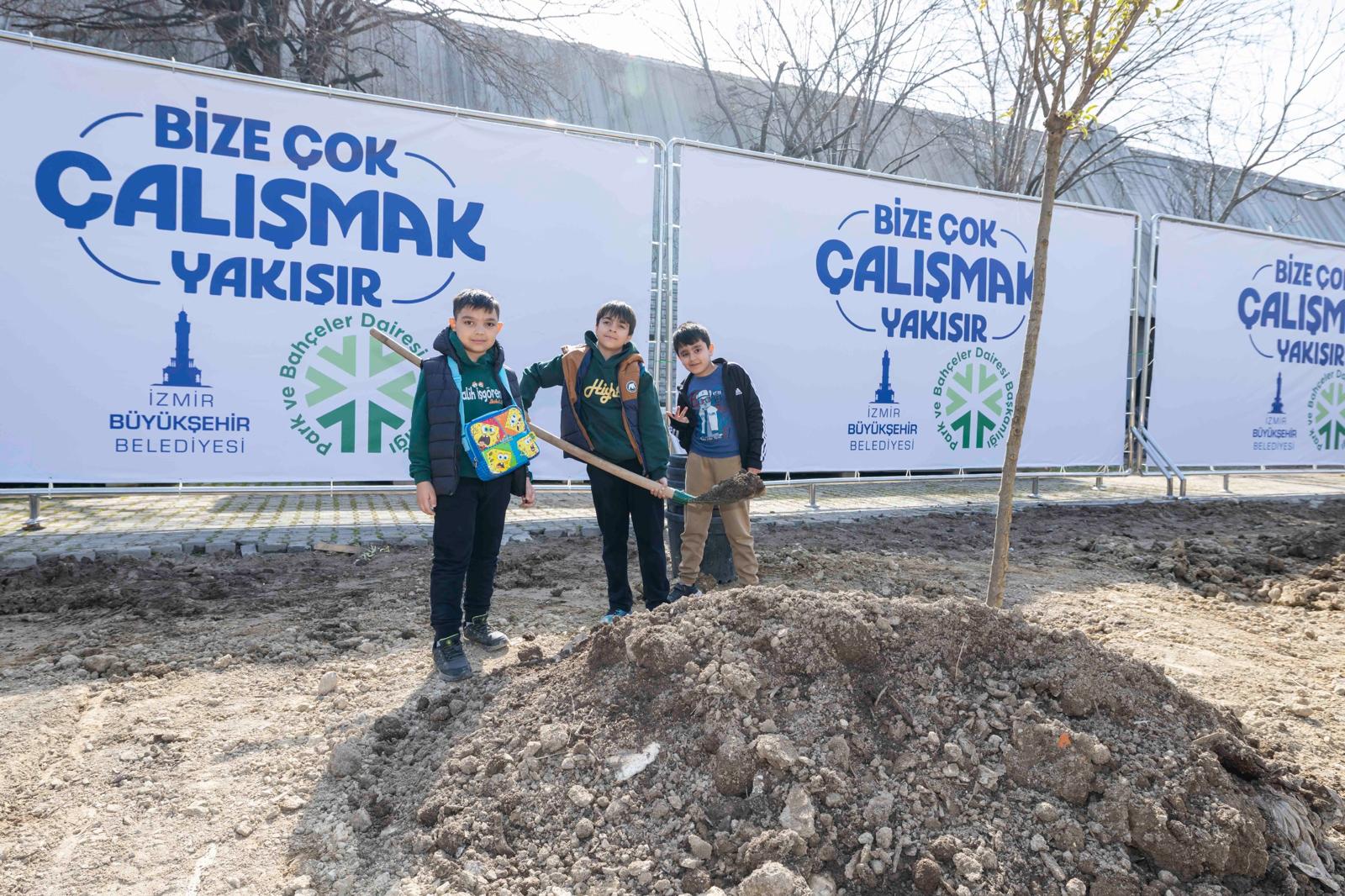 Kültürpark’ta 4 bin 300 metrekarelik gri alan çocukların elleriyle yeşile döndü. 190 fidan toprağa kavuştu, İzmir 190 yeni nefes kazandı. İzmir Büyükşehir Belediye Başkanı Dr. Cemil Tugay, “Bugün diktiğimiz ağaçlar 100 yıl sonra da bu şehri mutlu edecek” dedi.