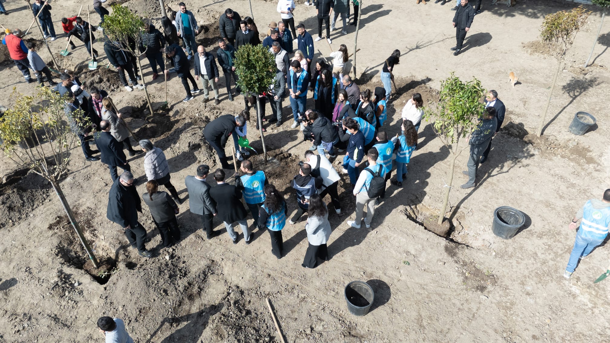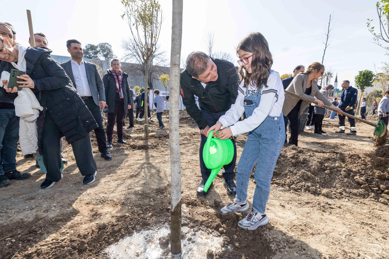 Başkan Tugay, konuşmanın ardından miniklerle beraber ağaçları toprakla buluşturarak can suyunu verdi. Ağaçlandırma çalışması kapsamında alana Doğu çınarı, akçaağaç, tarçın, sığla, ıhlamur, çitlembik, kurtbağrı, tijli defne ve erguvan türleri dikildi.