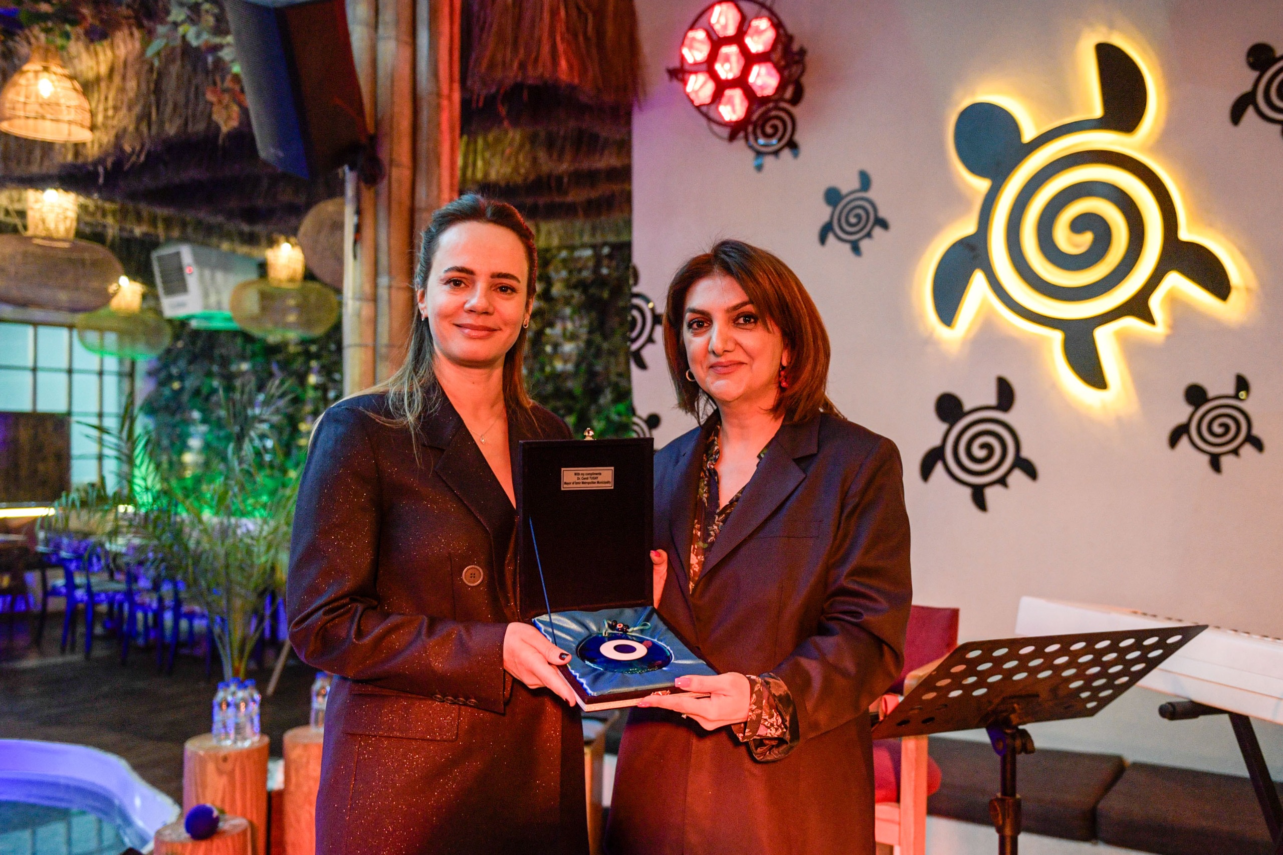 İzmir Büyükşehir Belediye Başkanı Dr. Cemil Tugay’ın eşi Öznur Tugay, İzmir Azerbaycan Derneği’nin (İZAZDER) 8 Mart Dünya Kadınlar Günü etkinliğine katıldı. Etkinlik, İZAZDER Kadınlar Komitesi Başkanı Terlan Akçay’ın ev sahipliğinde gerçekleştirildi. Tugay, “Bu anlamlı günde bir arada olmak çok değerli. Diliyorum ki kadınlar hayattan koparılmasın, psikolojik ve fiziki şiddet görmesin; Kadınlar Günü sadece eğlence için kutlanan bir gün haline gelsin. Bu değişimi hep birlikte, güç birliğiyle sağlayalım” dedi. Akçay, tüm kadınların Kadınlar Günü’nü kutlayarak Öznur Tugay’a Azerbaycan’a özgü bir örtü hediye etti; Tugay da Akçay’a nazar boncuğu verdi.