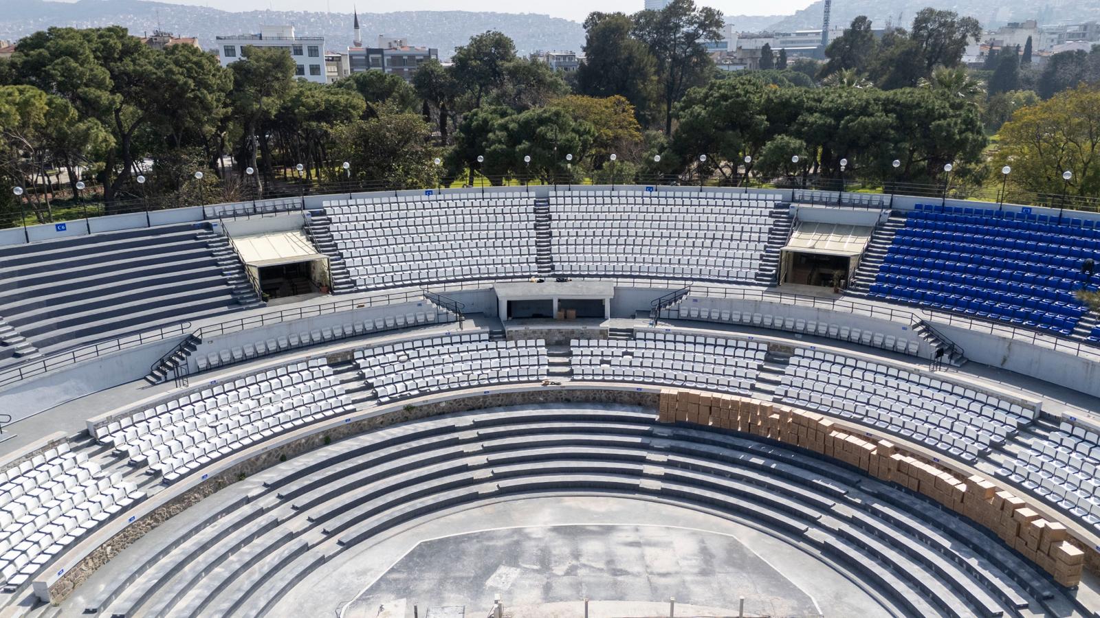 İzmir Büyükşehir Belediyesi, Kültürpark Atatürk Açık Hava Tiyatrosu’nda büyük bir yenileme çalışması başlattı. Sahne ve oturma alanlarında yapılan kapsamlı tadilatlarla, İzmirlilere yeni sezonda daha konforlu ve kaliteli bir kültürel deneyim sunulması hedefleniyor.