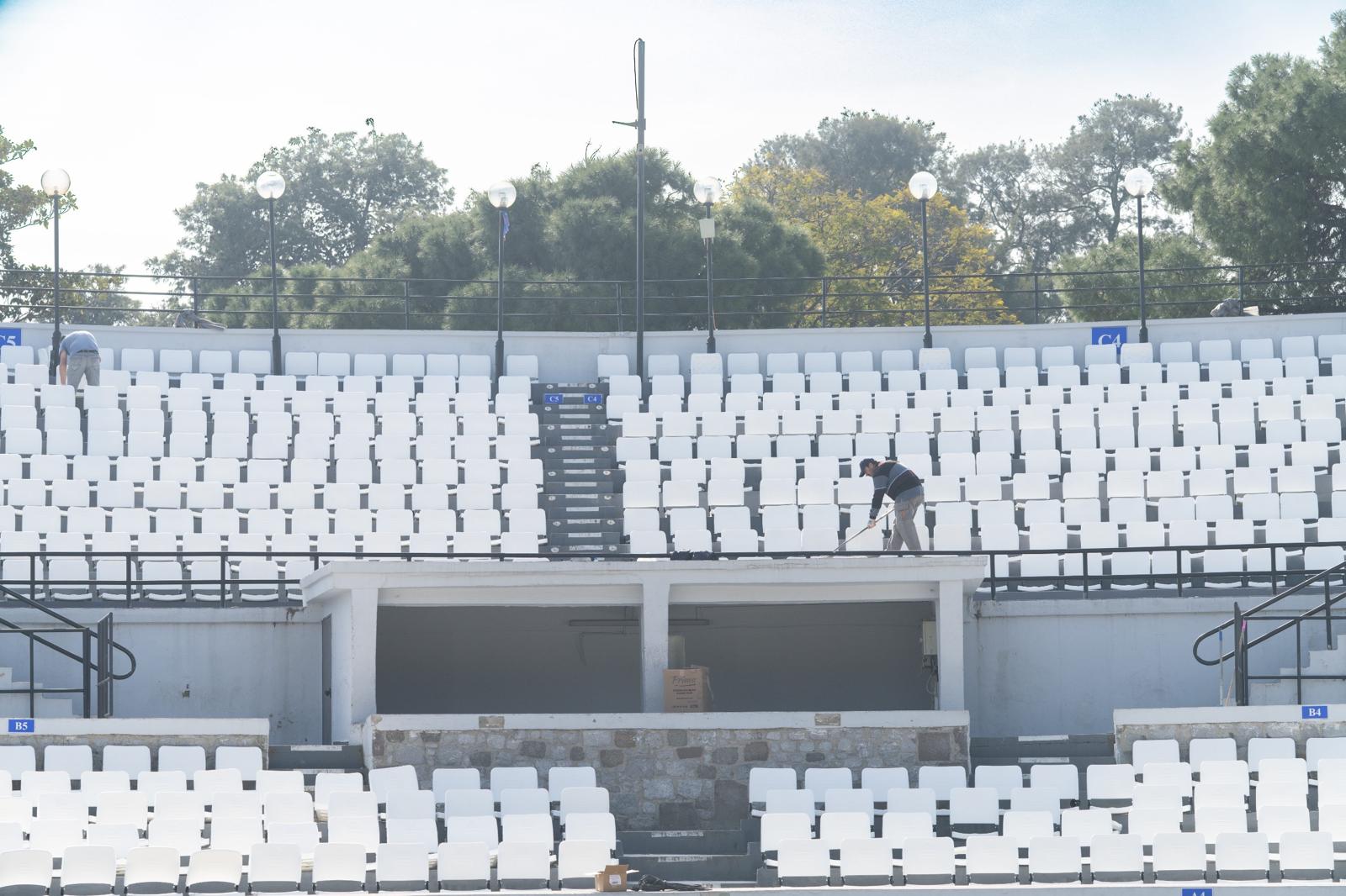 Yürütülen çalışmalar hakkında bilgi veren Grand Plaza AŞ yetkilisi Barış Amiral, “İzmir Büyükşehir Belediye Başkanımız Dr. Cemil Tugay’ın talimatıyla, tiyatro ve konser etkinliklerinde vatandaşlarımızın çok daha kaliteli ve konforlu vakit geçirebilmesi için büyük bir revizyona gittik. Bu yıl kapsamlı bir tadilat sürecine girdik. Sahne yapısını ve tribünlerdeki koltukları yeniden düzenliyoruz. Eski sahnemiz yaklaşık 4,5 metre daha uzundu ve bu nedenle blokların ilk ve son sıralarındaki izleyicilerin görüş mesafesi sınırlıydı. Şimdi sahneyi geriye alarak bu sorunu çözdük. Yeni sezonda, daha rahat ve dayanıklı koltuklarla hizmet vereceğiz. Çalışmalarımızı nisan ayının ikinci veya üçüncü haftasında tamamlamayı hedefliyoruz. Harika bir sezona hazırlanıyoruz” dedi.