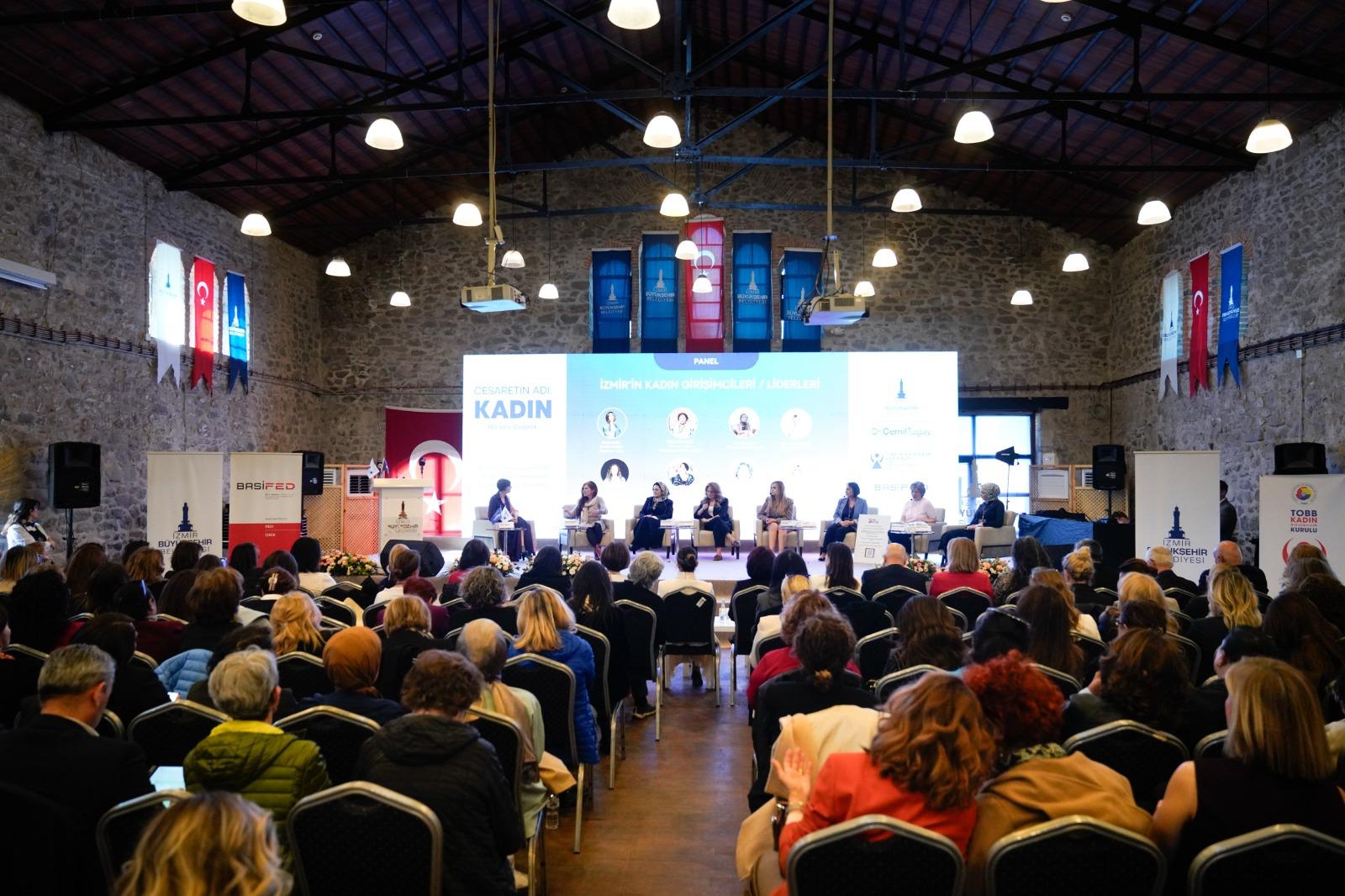 İzmir Büyükşehir Belediyesi, Batı Anadolu Sanayici ve İş İnsanları Dernekleri Federasyonu (BASİFED) ve Türkiye Odalar ve Borsalar Birliği (TOBB) İzmir Kadın Girişimciler Kurulu paydaşlığında 8 Mart Dünya Kadınlar Günü nedeniyle düzenlenen ‘Cesaretin Adı: Kadın Zirvesi-103 Yıllık Cesaret’ buluşması iş dünyası, girişimcilik, sanat, medya ve sivil toplum alanlarında Türkiye’ye değer katan pek çok önemli ismin katkı sunduğu panellerle devam etti. Gün boyu süren programda deneyimli gazetecilerin moderasyonunda gerçekleşen panellerde, konularında öncü konuşmacılar, akademiden sanata, girişimcilikten kurumsal yönetime kadar geniş bir perspektifle sunumlar yaptı.