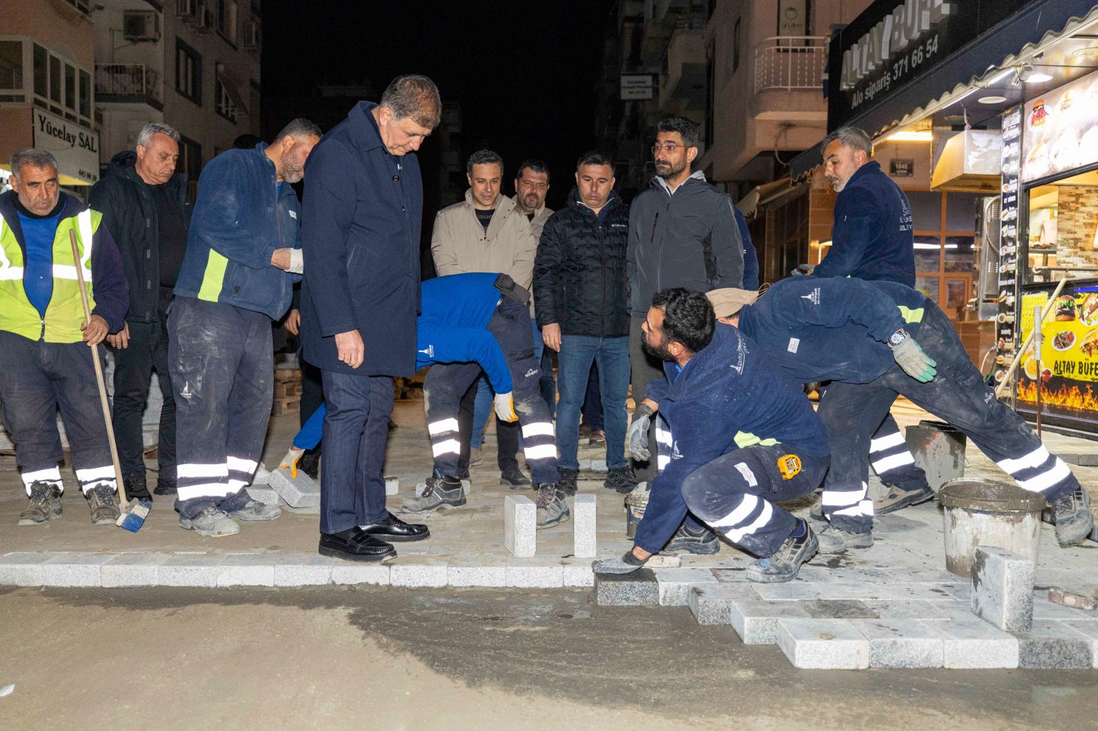 İzmir Büyükşehir Belediye Başkanı Dr. Cemil Tugay, şehirde kesintisiz devam eden saha çalışmalarını incelemek üzere gece yarısından sonra görevi başındaki işçileri ziyaret etti. Başkan Tugay, gece mesaisine Bayraklı Sevgi Yolu’nda başladı, ardından Buca Uğur Mumcu Caddesi’nde devam eden asfalt serimi ve yol yenileme çalışmalarını inceledi. Tugay, gece boyunca çalışan işçilerle sohbet etti, birlikte yorgunluk çayı içti.