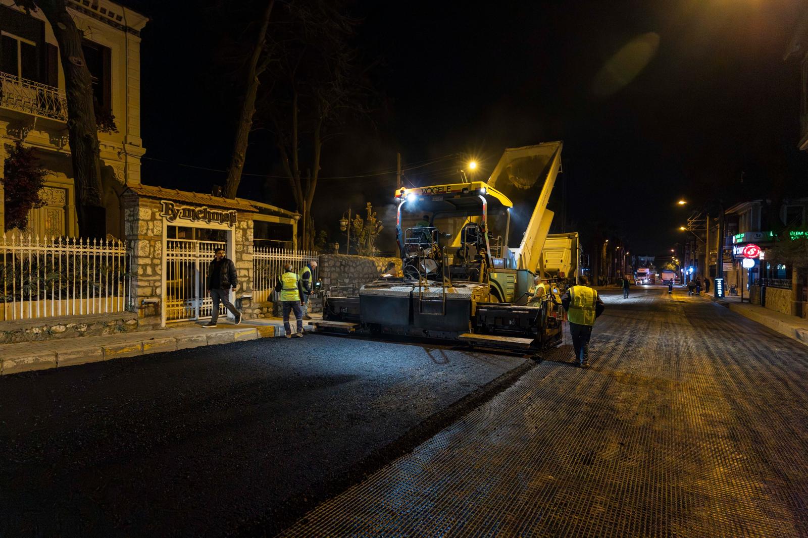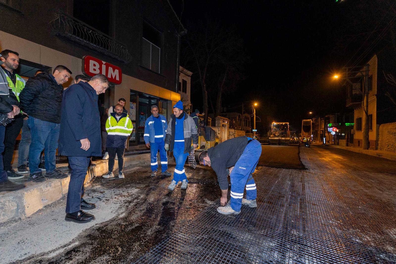 Başkan Tugay yol emekçileriyle gece mesaisinde buluştu