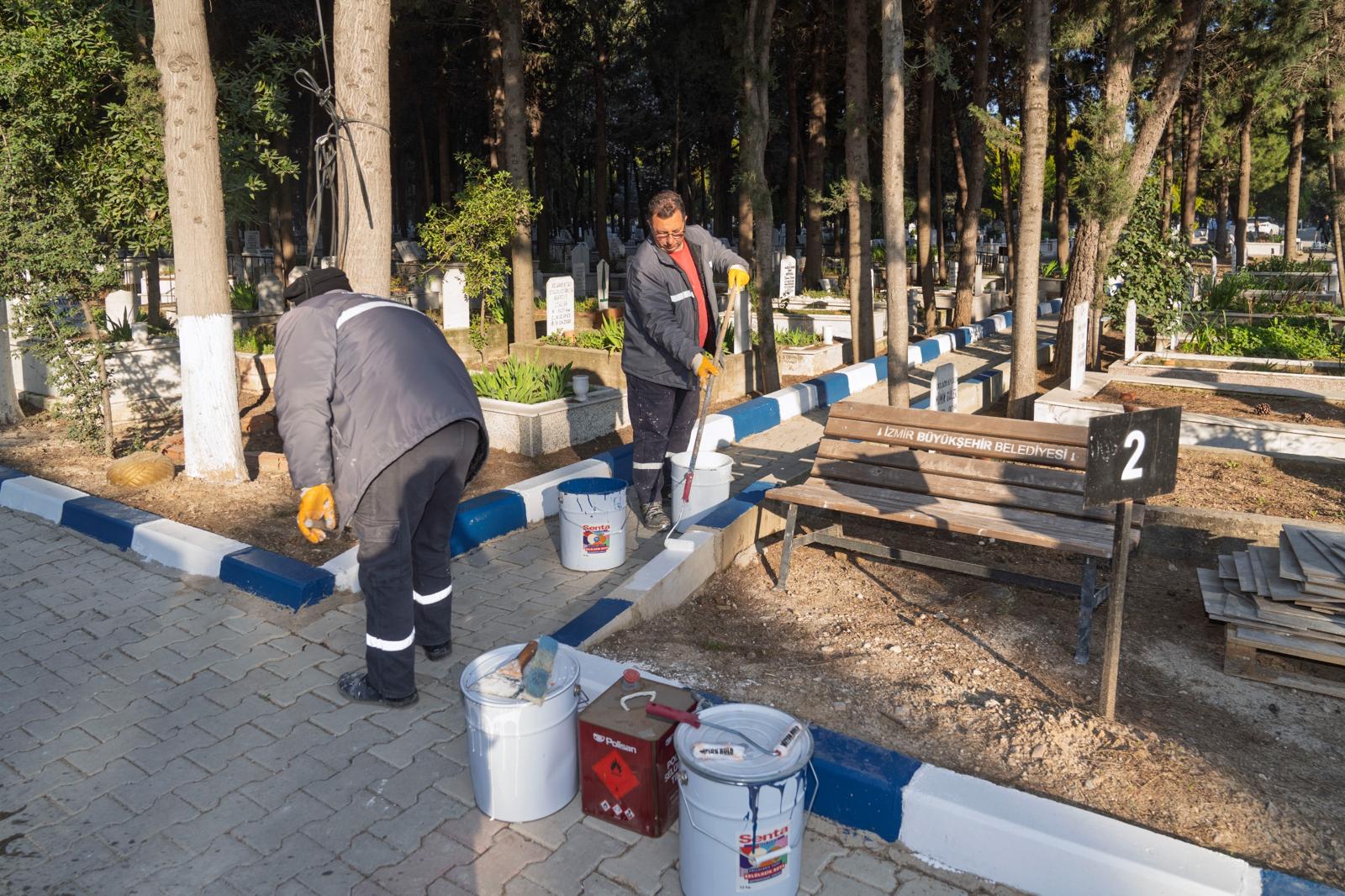İzmir Büyükşehir Belediyesi, Ramazan Bayramı öncesinde kent genelindeki mezarlıklarda bakım ve temizlik çalışmalarını hızlandırdı. 30 ilçede bulunan toplam 2 bin 500 parselde yürütülecek çalışmalar Gaziemir’den başlatıldı.