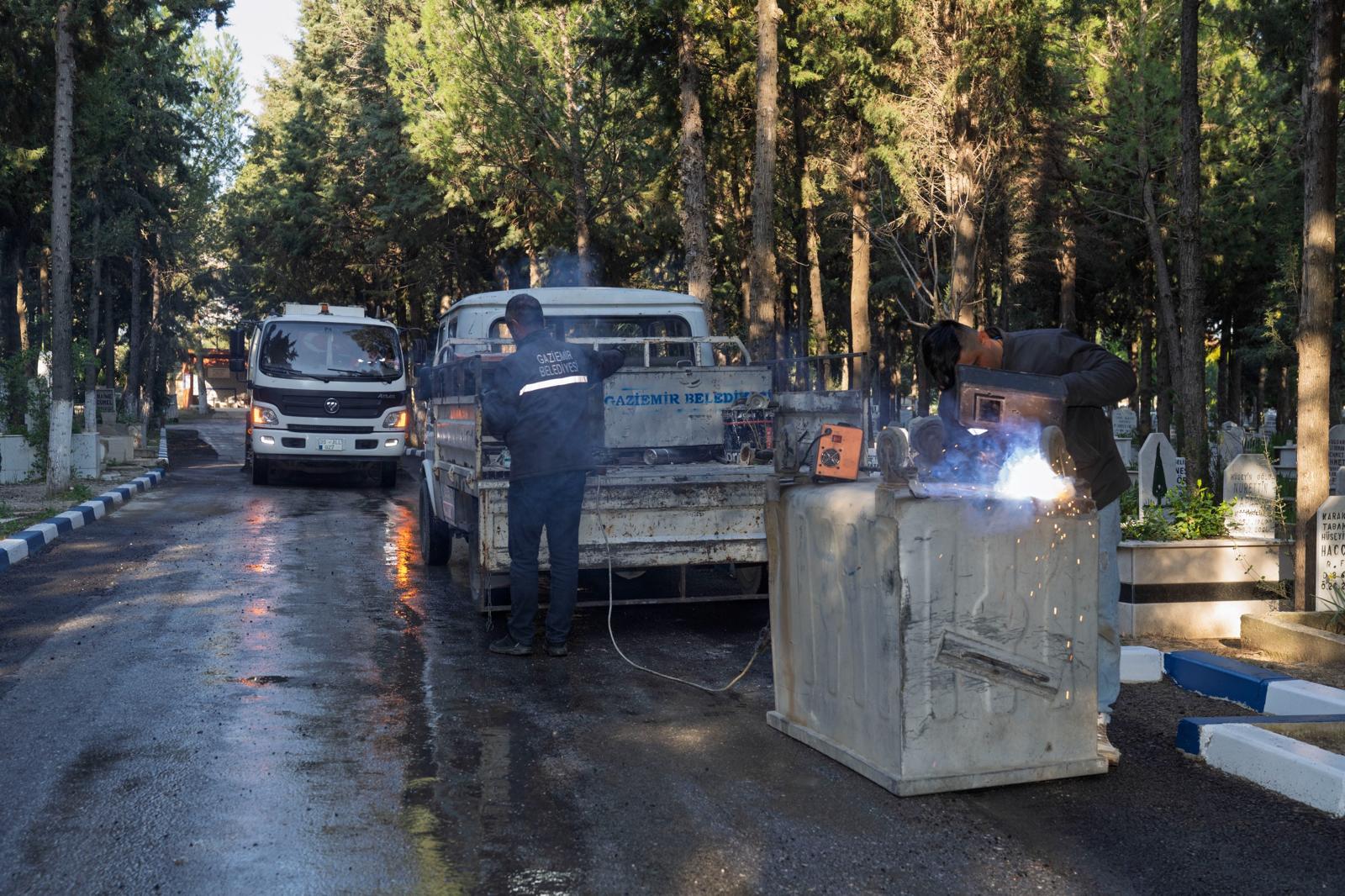 Gaziemir Belediye Başkanı Ünal Işık, her bayram öncesinde İzmir Büyükşehir Belediyesi ile birlikte kapsamlı temizlik çalışmaları yürüttüklerini belirterek, “Aramızdan ayrılan komşularımızın ebedi istirahatgâhlarında huzur içinde uyumaları, ziyarete gelen vatandaşlarımızın da ziyaretlerini daha sağlıklı bir ortamda gerçekleştirebilmeleri için çalışmalarımızı sürdürüyoruz” dedi.
