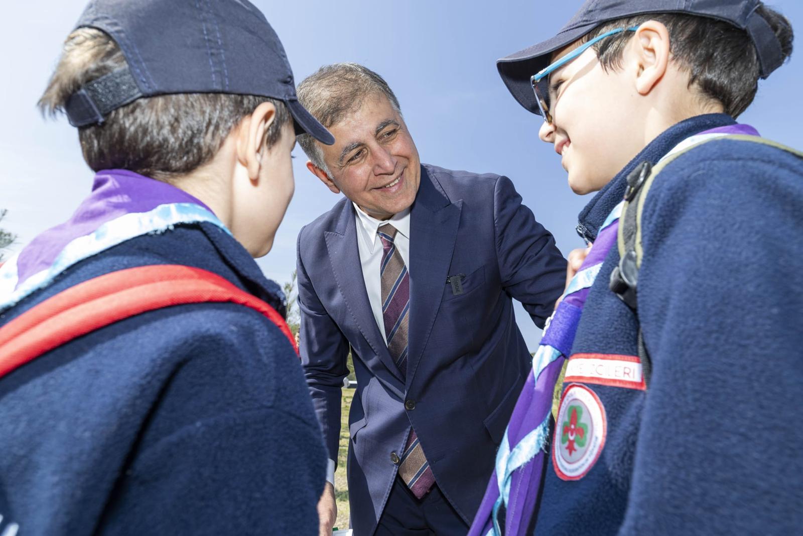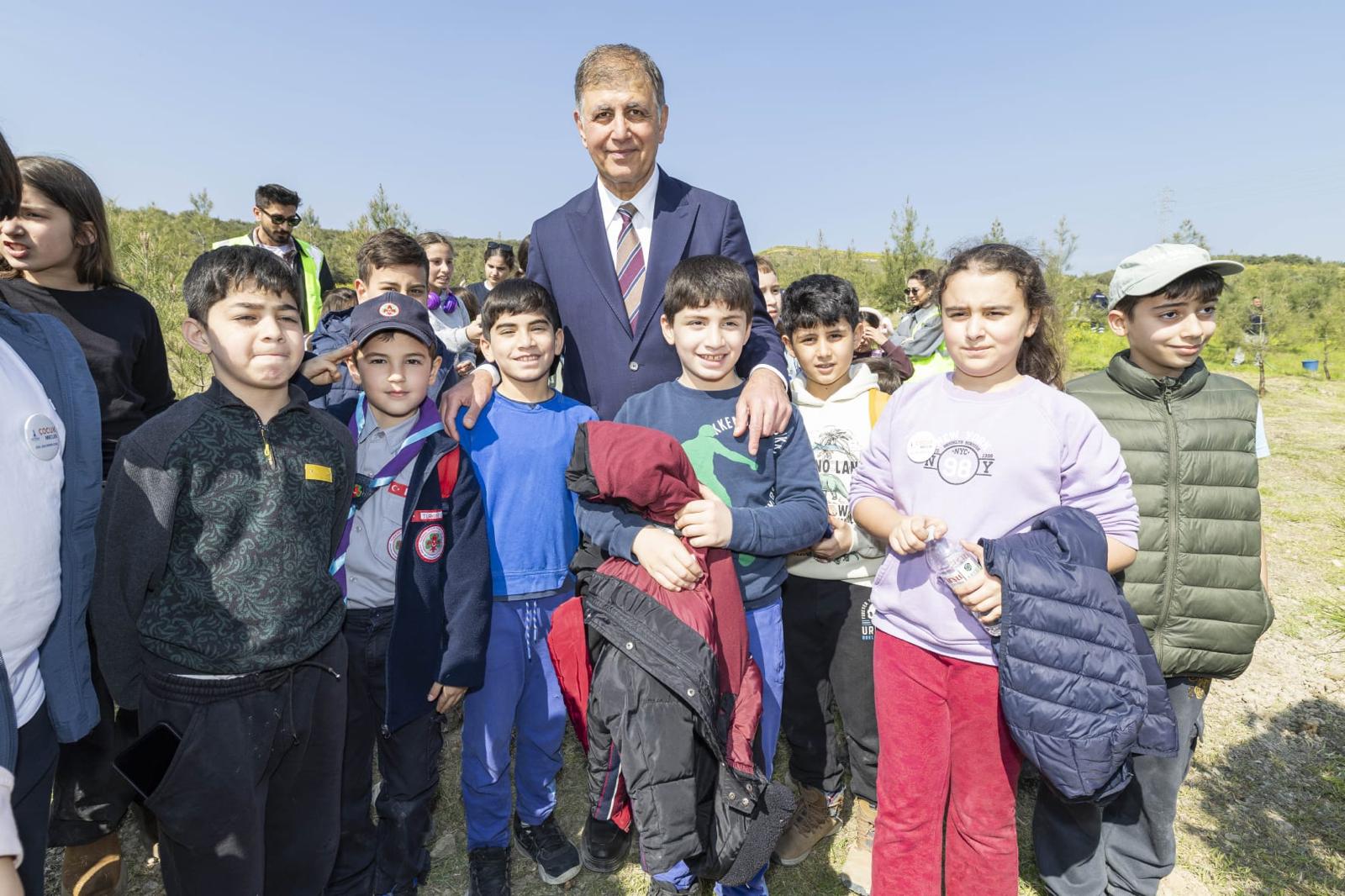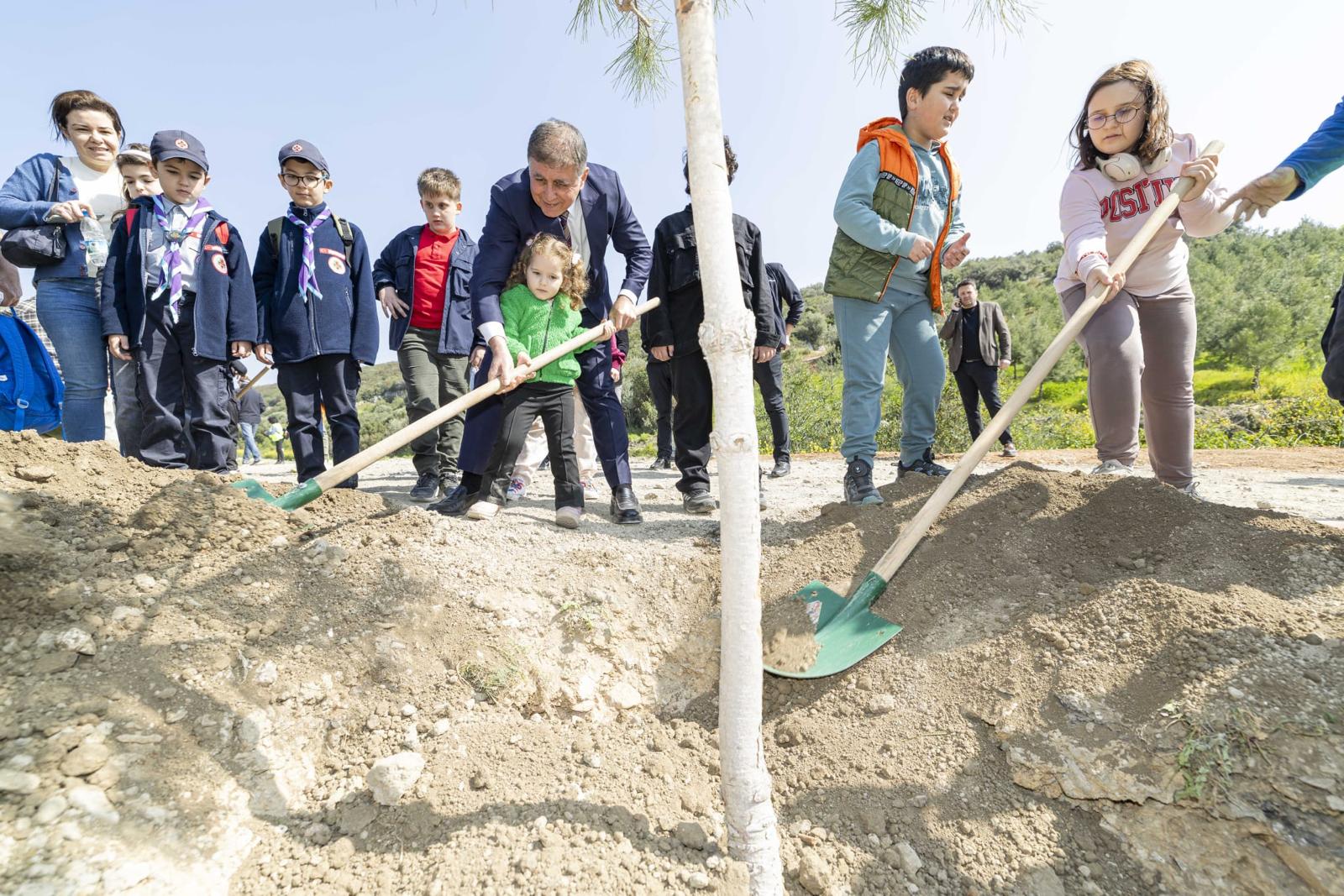 Başkan Tugay çocuklara verdiği sözü tuttu, fidanlar toprakla buluştu