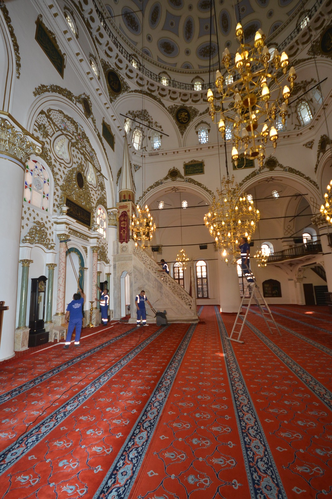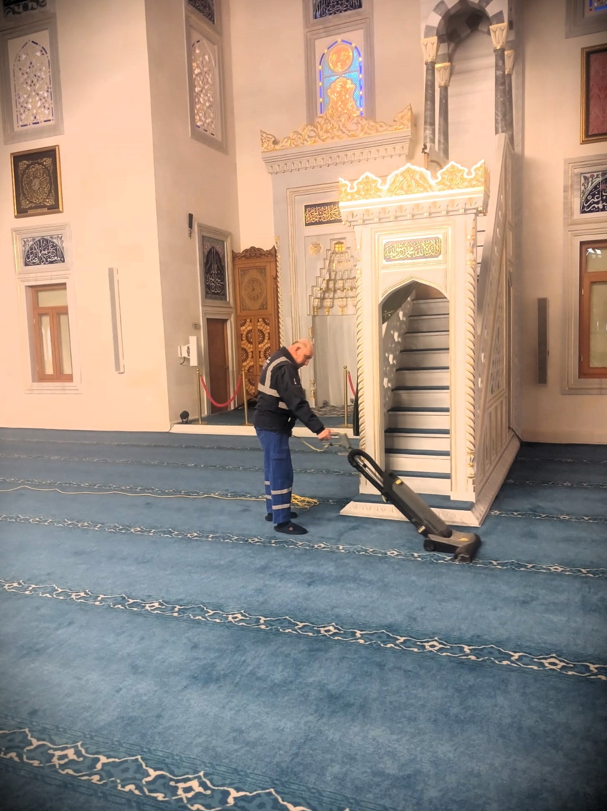 Camilerin mihrap, minber, kapı, pencere, kürsü ve duvarları titizlikle temizlendi. Avizeler özel yöntemlerle yıkandı, camilerin zeminini kaplayan halılar yıkama makineleriyle hijyenik hale getirildi.