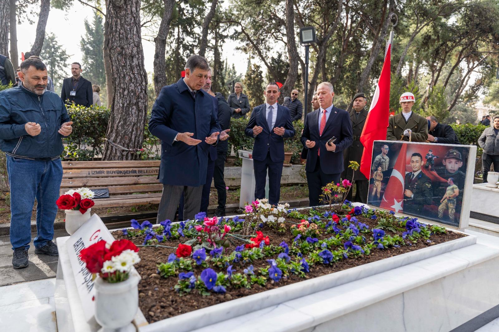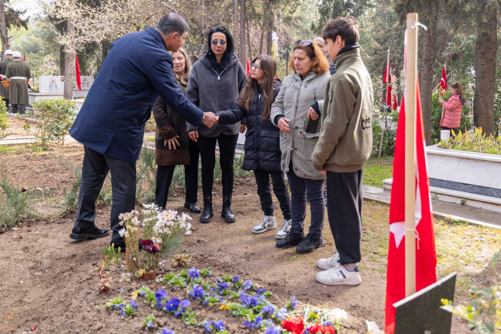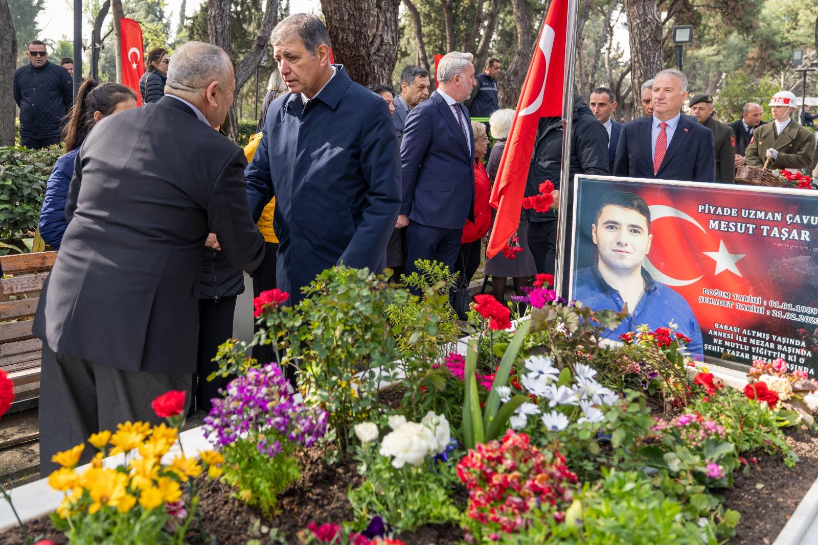 İzmir Büyükşehir Belediye Başkanı Dr. Cemil Tugay, 18 Mart Şehitleri Anma Günü ve Çanakkale Deniz Zaferi’nin yıl dönümü nedeniyle Kadifekale Şehitliği’nde düzenlenen anma törenine katıldı. Başkan Tugay, geçtiğimiz günlerde kullandığı F-16 tipi savaş uçağının düşmesi sonucunda şehit olan Hava Pilot Binbaşı İbrahim Bolat’ın kabrini de ziyaret edip ailesine başsağlığı diledi.