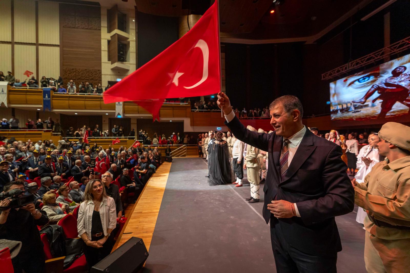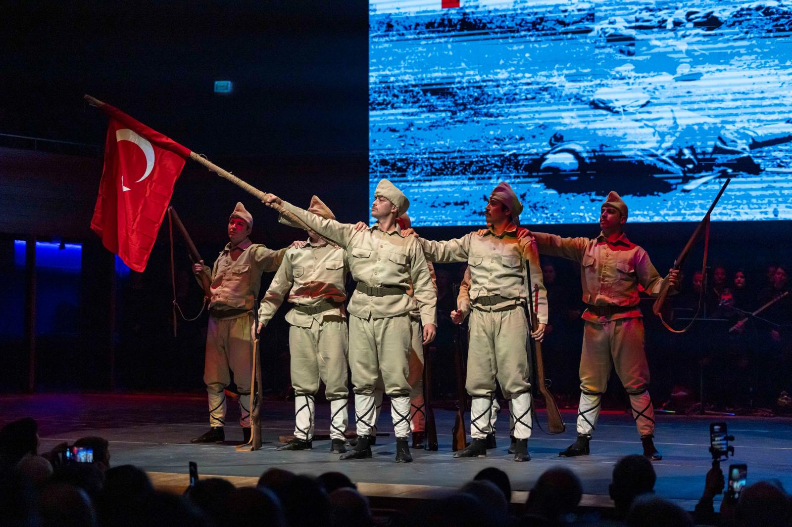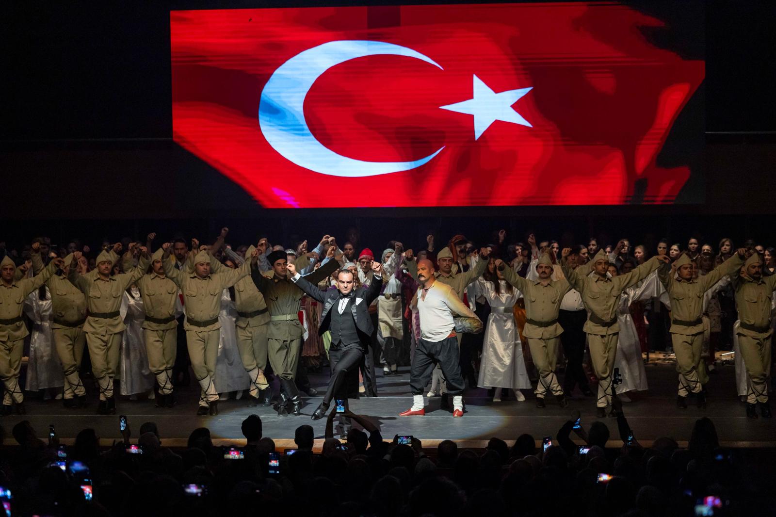İzmir Büyükşehir Belediyesi tarafından 18 Mart Çanakkale Zaferi ve Şehitleri Anma Günü etkinlikleri kapsamında hazırlanan “Uyan Memet” dans ve müzikal anlatısı, Ahmed Adnan Saygun Sanat Merkezi’nde (AASSM) sahnelendi. Yaklaşık 200 kişilik dev kadronun yer aldığı gösteri, Çanakkale’deki direniş ve kahramanlık hikâyesini sahneye taşıyarak izleyicilere duygu dolu anlar yaşattı. Gösteriyi Başkan Dr. Cemil Tugay ve eşi Öznur Tugay da izlerken, program sonunda salonu dolduran izleyiciler İzmir Marşı’nı hep bir ağızdan söyledi.