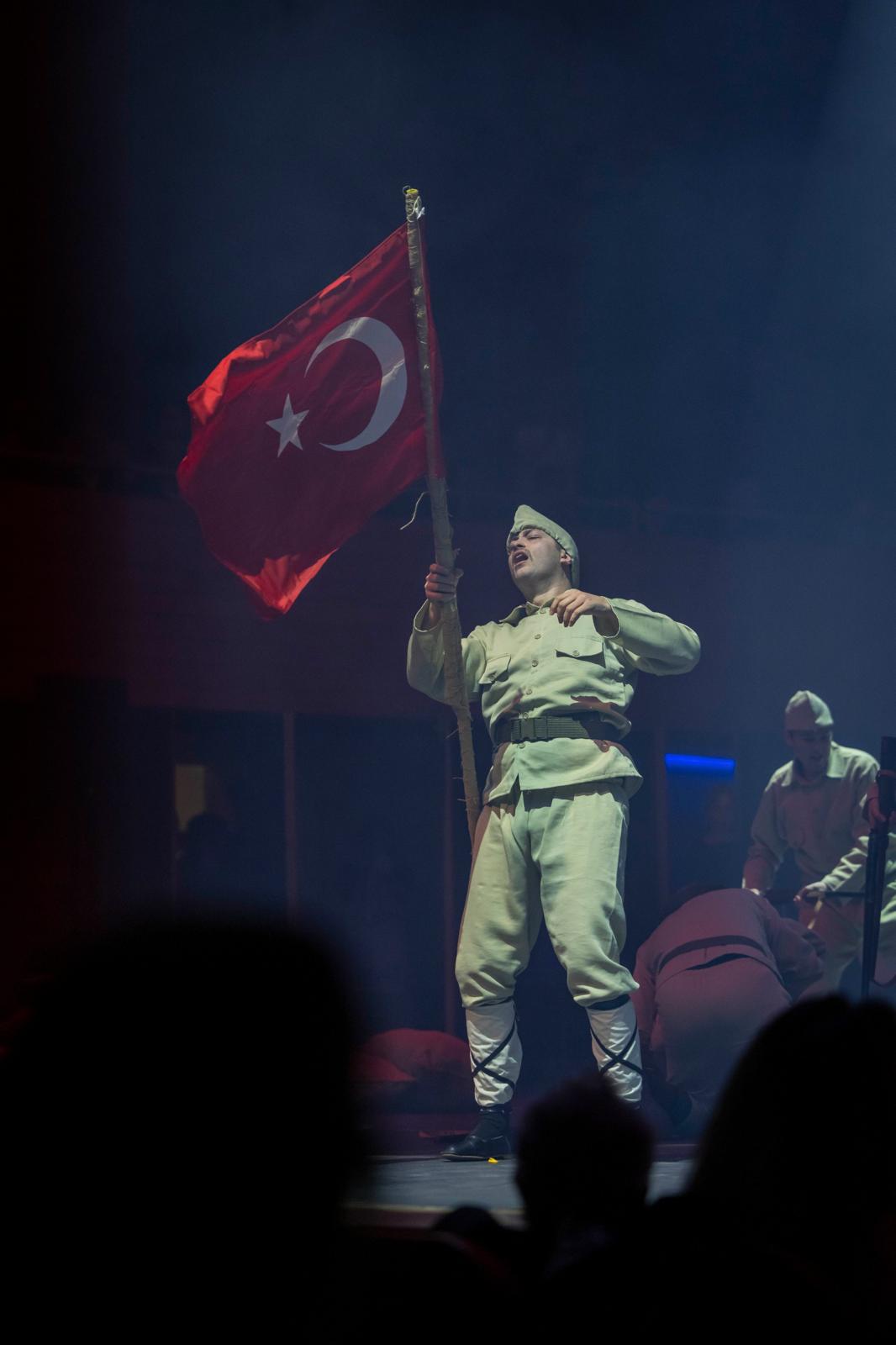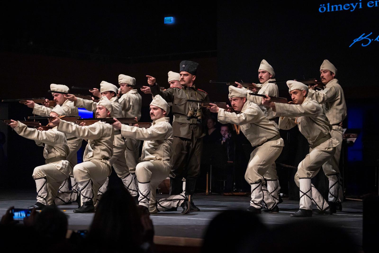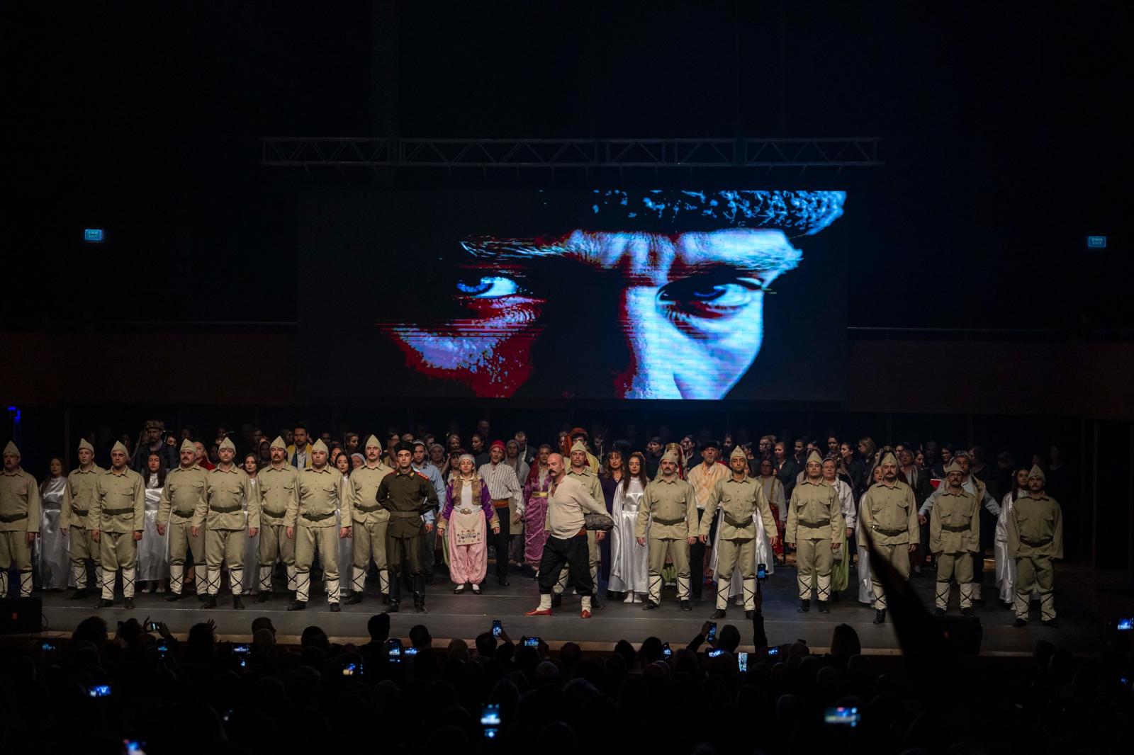 İzmir Büyükşehir Belediyesi tarafından 18 Mart Çanakkale Zaferi ve Şehitleri Anma Günü etkinlikleri kapsamında hazırlanan “Uyan Memet” dans ve müzikal anlatısı, Ahmed Adnan Saygun Sanat Merkezi’nde (AASSM) sahnelendi. Yaklaşık 200 kişilik dev kadronun yer aldığı gösteri, Çanakkale’deki direniş ve kahramanlık hikâyesini sahneye taşıyarak izleyicilere duygu dolu anlar yaşattı. Gösteriyi Başkan Dr. Cemil Tugay ve eşi Öznur Tugay da izlerken, program sonunda salonu dolduran izleyiciler İzmir Marşı’nı hep bir ağızdan söyledi.