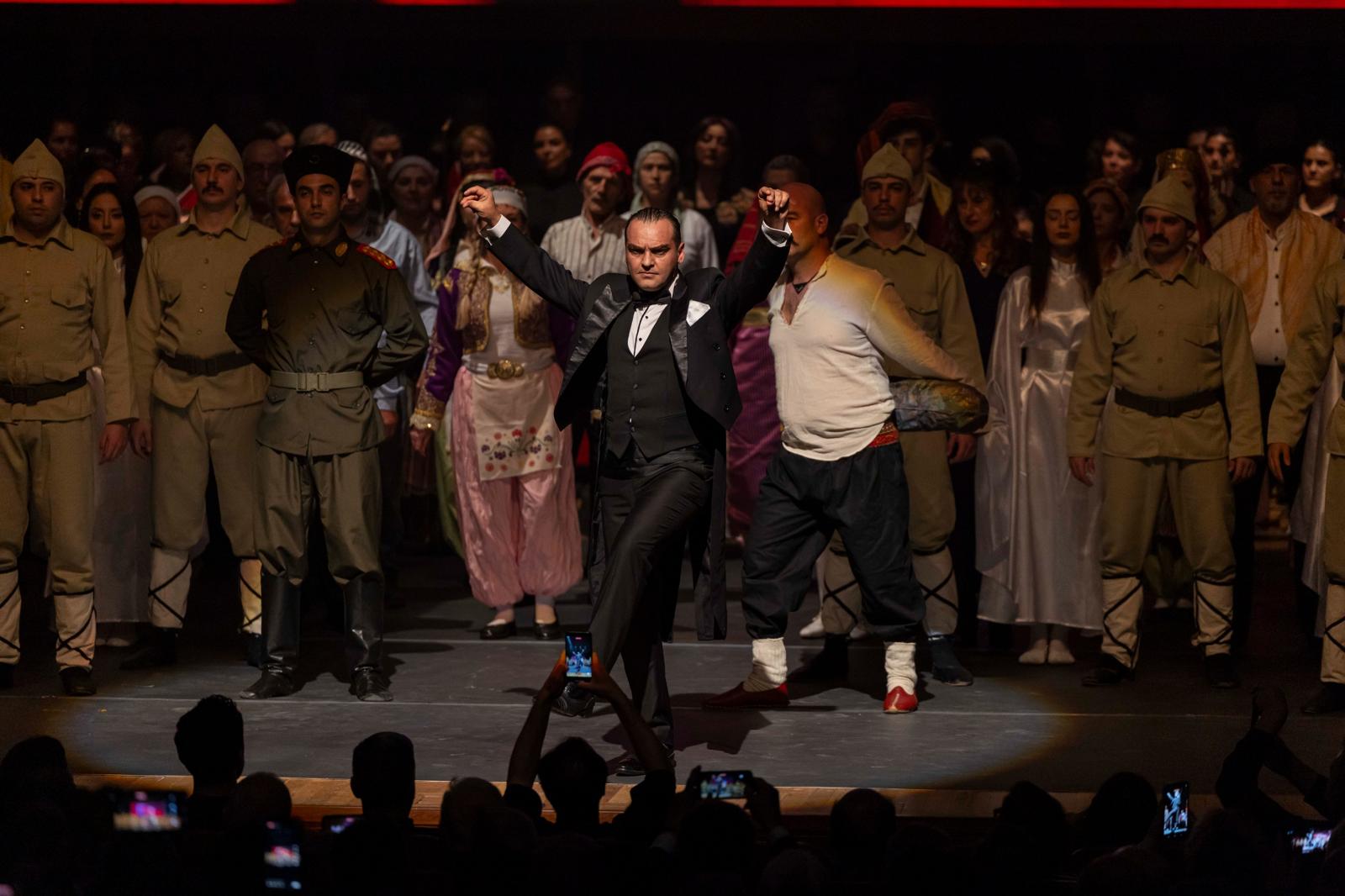 İzmir Büyükşehir Belediyesi’nin 18 Mart Çanakkale Zaferi ve Şehitleri Anma Günü kapsamında hazırladığı “Uyan Memet” dans ve müzikal anlatısı, Ahmed Adnan Saygun Sanat Merkezi’nde (AASSM) izleyiciyle buluştu. Gösteriyi İzmir Büyükşehir Belediye Başkanı Dr. Cemil Tugay ile eşi Öznur Tugay da sanatseverlerle birlikte izledi. Balkan Savaşları’nın yorgunluğunu yaşayan bir halkın, Çanakkale siperlerinde sergilediği direniş ve kahramanlık üzerinden bir ulusun yeniden ayağa kalkışını konu alan eser, sahne diliyle izleyicilere duygusal anlar yaşattı. İzmir Büyükşehir Belediyesi Türk Halk Müziği Korosu, anlatının duygusal zeminini oluşturan ağıt ve kahramanlık türkülerini seslendirirken, Türk Halk Oyunları Topluluğu ise tarihsel süreci sahneye taşıdı.
