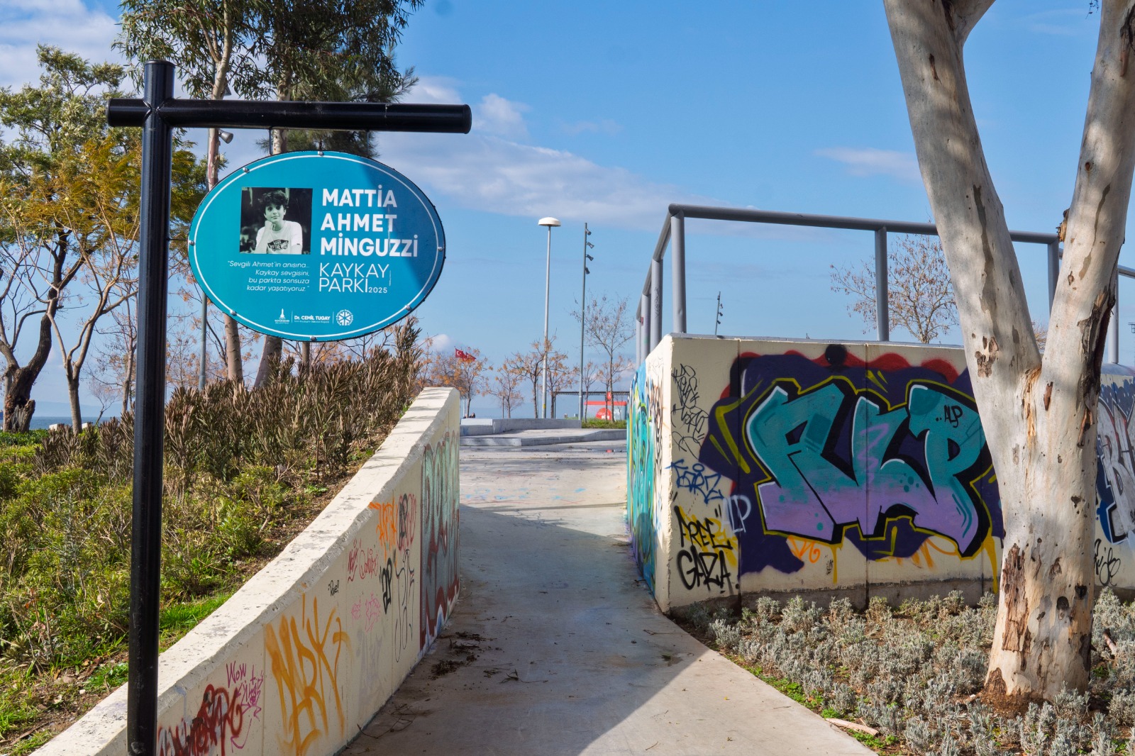 İstanbul'da uğradığı saldırı sonucu 24 Ocak 2025’te hayatını kaybeden 14 yaşındaki Mattia Ahmet Minguzzi'nin ailesi, İzmir Büyükşehir Belediye Başkanı Dr. Cemil Tugay'ı ziyaret ederek oğullarının adının kaykay parkına verilmesi dolayısıyla teşekkürlerini iletti. Başkan Tugay, “Ahmet Minguzzi'nin hatırasını yaşatmak ve acınızı bir nebze de olsa hafifletmek için, bundan sonraki süreçte benzer olumsuz olayların yaşanmaması adına sizin önerileriniz doğrultusunda yapmamız gereken her şeyi yerine getirmeye hazırız” dedi.