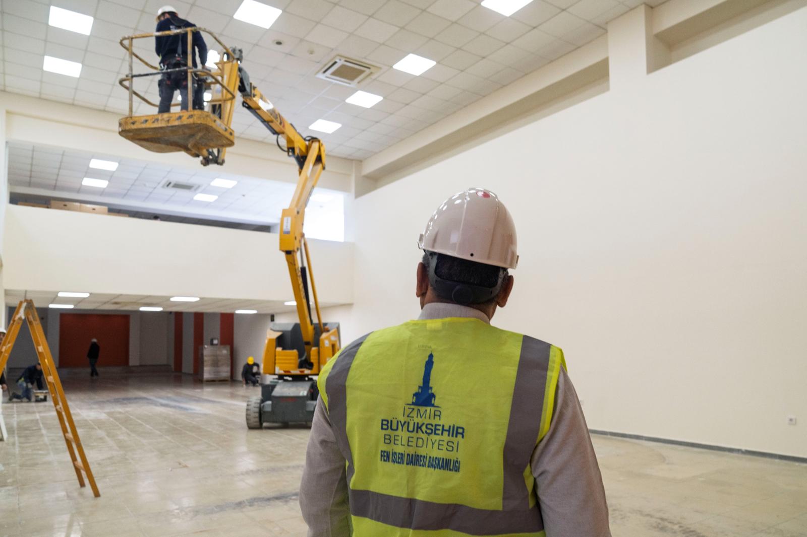 Fen İşleri Dairesi Başkanlığı Tesisler Bakım ve Onarım Şube Müdürü Nihat Kurtar, atıl durumda olan Taş Eserler Müzesi’nin Büyükşehir’in öz kaynaklarıyla kütüphaneye dönüştürüldüğünü belirtti. Çatı başta olmak üzere asma tavan, duvarlar, ıslak hacimler, elektrik ve havalandırma sistemlerinin baştan sona yenilendiğini aktaran Kurtar, “Dijital alan, ders çalışma ve sosyal etkinlik bölümleri oluşturduk. İşi bitirme aşamasındayız. Başkanımızın İzmirlilere vermiş olduğu söz doğrultusunda nisan ayına kütüphanemizi yetiştireceğiz” dedi.
