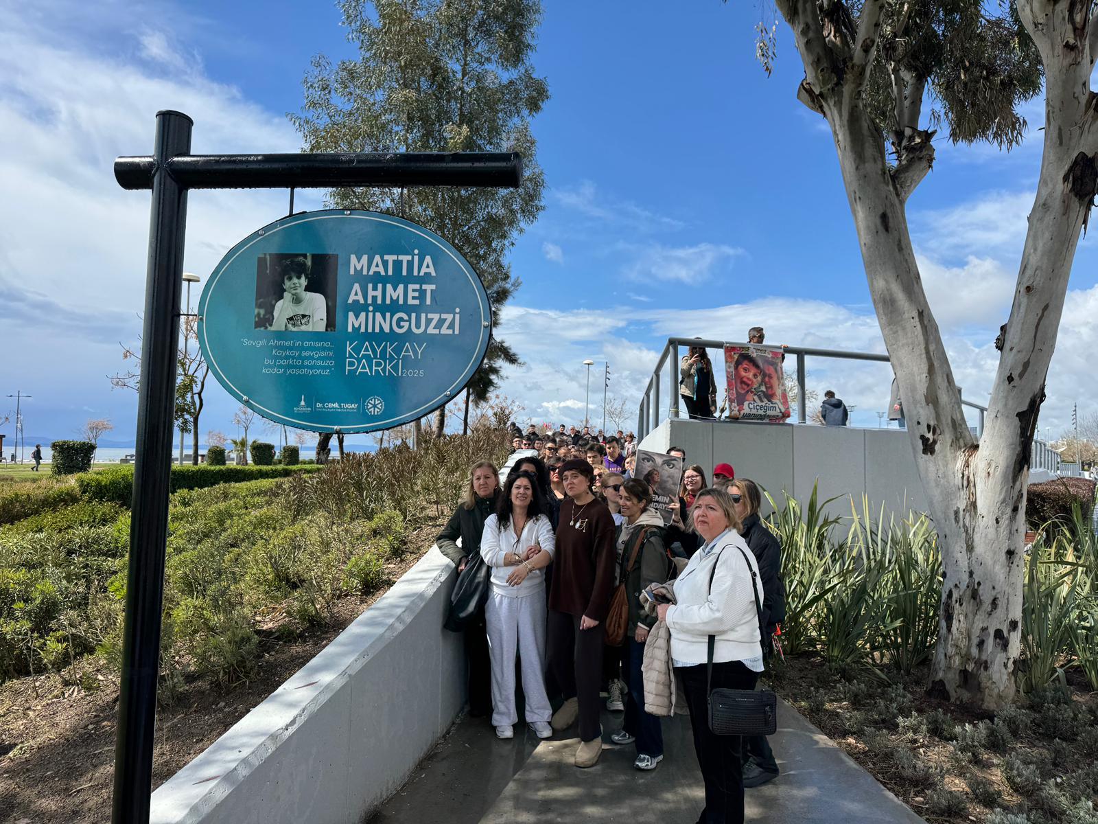 İzmir Büyükşehir Belediyesi tarafından İstanbul’da uğradığı saldırı sonucu hayatını kaybeden 14 yaşındaki Mattia Ahmet Minguzzi’nin adı verilen Karşıyaka’daki kaykay parkı anlamlı bir etkinliğe ev sahipliği yaptı. 28 Mart’ta oğullarının adının parka verilmesi nedeniyle İzmir Büyükşehir Belediye Başkanı Dr. Cemil Tugay’a teşekkür ziyaretinde bulunan Minguzzi ailesi, pazar günü de kaykay parkını ziyaret etti. İzmir halkı da aileyi yalnız bırakmadı. Ahmet Minguzzi’nin annesi Yasemin Minguzzi’ye eşlik eden İzmirli kadınlar, Mattia Ahmet Minguzzi fotoğrafları ve “Yasemin çiçeğimizin yanındayız” sloganıyla yürüdü. İzmirliler ailenin üzüntüsüne ortak olurken, sokak güvenliğinin önemine dikkat çekerek, gençlerin korunmasına yönelik beklentilerini dile getirdi.