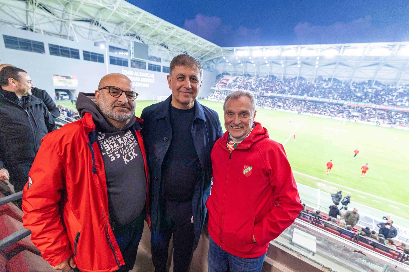 İzmir Büyükşehir Belediye Başkanı Dr. Cemil Tugay, Karşıyaka ile Eskişehirspor futbol takımları arasındaki lig karşılaşmasını tribünden izleyerek İzmir temsilcisine destek verdi. Türk futbolunun efsane isimlerinden Tanju Çolak maç sırasında Başkan Tugay’ın yanına gelerek Karşıyaka Stadı’nın yapım sürecinin başlatılması nedeniyle teşekkür etti. Başkan Tugay ise “Yapabildiğimiz en güzel stadı yapacağız” ifadelerini kullandı.