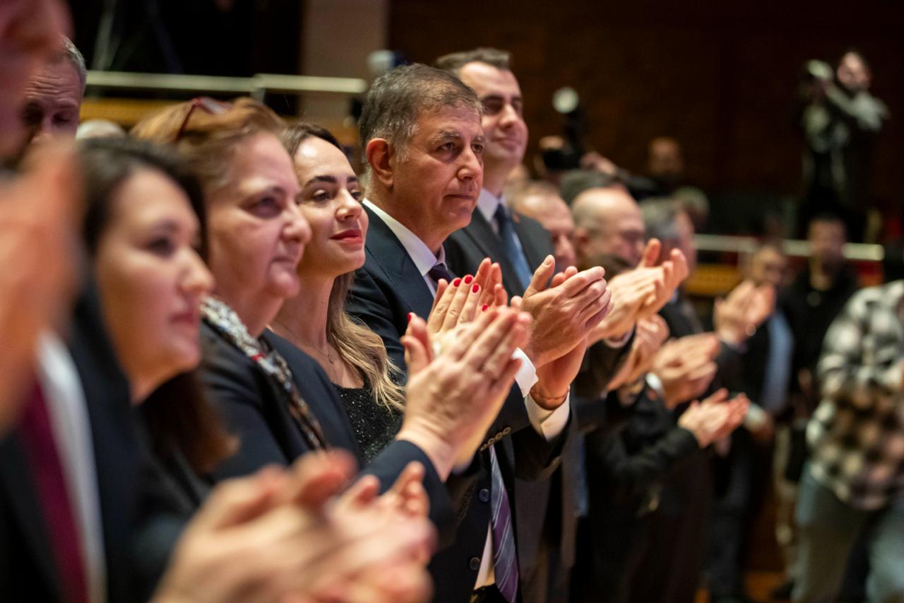 Ahmed Adnan Saygun Sanat Merkezi’nde (AASSM) düzenlenen toplu açılış, temel atma ve anahtar teslim törenine Büyükşehir Belediye Başkanı Tugay’ın eşi Öznur Tugay, CHP Genel Başkan Yardımcıları Ulaş Karasu, Aylin Nazlıaka, Gökçe Gökçen, Bihlun Tamaylıgil, Gökan Zeybek, Ensar Aytekin, Güldem Atabay, CHP İzmir İl Başkanı Çağatay Güç, CHP İzmir milletvekilleri, ilçe belediye başkanları, geçmiş dönem belediye başkanları, İzmir Büyükşehir Belediyesi bürokratları, sivil toplum kuruluşları, dernekler ve meslek odalarının temsilcileri, belediyelerin meclis üyeleri, mahalle muhtarları ve İzmirliler katıldı.