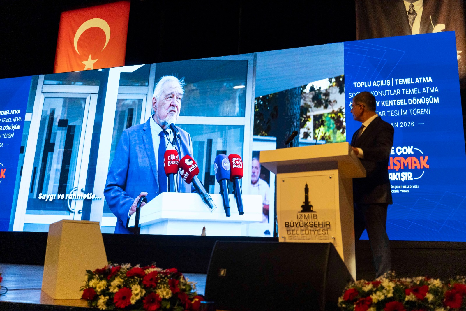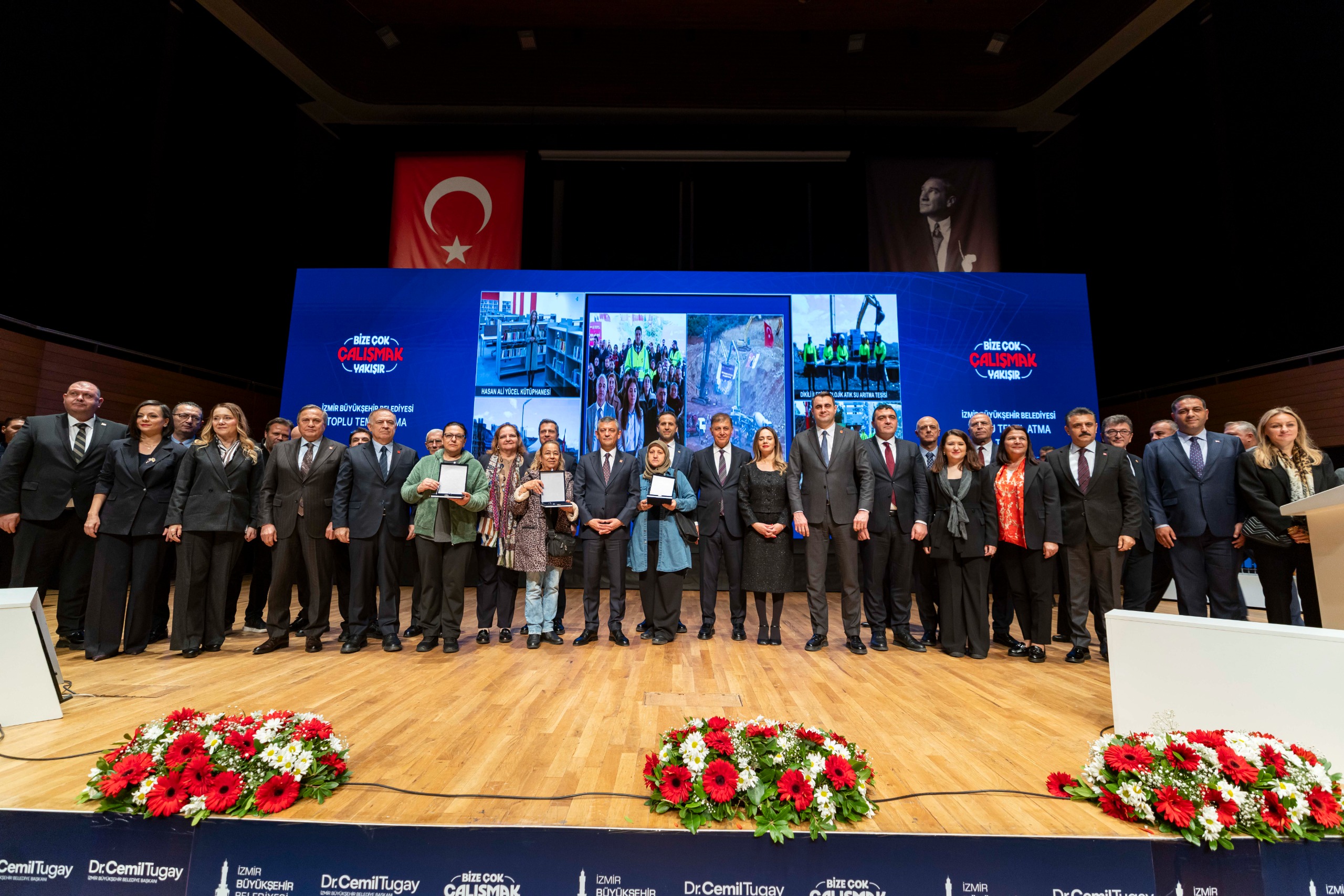“Bize Çok Çalışmak Yakışır” sloganıyla kentin dirençli, planlı, yeşil odaklı ve sürdürülebilir hale dönüştürülmesi ve yurttaşların yaşam konforunun artırılması için, göreve geldiği tarihten itibaren yoğun mesai harcayan İzmir Büyükşehir Belediye Başkanı Dr. Cemil Tugay tarihi bir törene ev sahipliği yaptı. İzmir’in dört bir köşesinde, her ilçesinde, tüm yurttaşlar için ayrımsız olarak yüzlerce projeyi hayata geçiren Büyükşehir Belediyesi, Cumhuriyet Halk Partisi (CHP) Genel Başkanı Özgür Özel’in katılımıyla ulaşım, altyapı, çevre, kültür ve sosyal yaşam alanlarında dev yatırımların temelini atarken çok sayıda proje ve tesisi hizmete aldı.