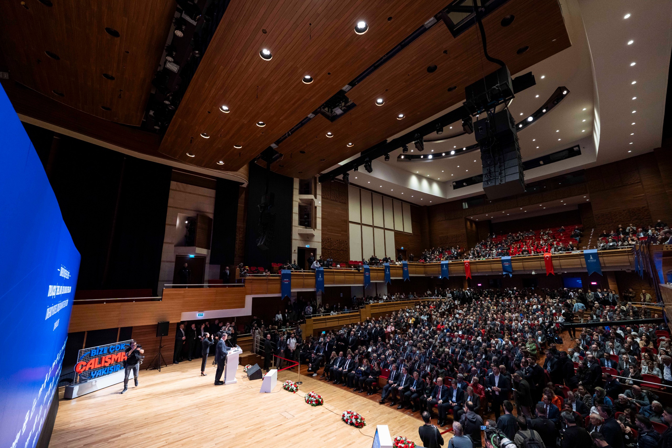 Özgür Özel, belediye başkanlarına seslenerek, “Temiz, titiz ve çok çalışmak zorundasınız. Seçmen bize bir kredi verdi; bu, bir yatırım kredisidir. Halk, Türkiye’nin aydınlık geleceğine ve evlatlarının yarınlarına yatırım yaptı. Bize de gelişmiş ülkeleri yakalayıp geçme görevi verdi” dedi. İktidarın belediyeleri maddi ve manevi olarak zorladığını ifade eden Özel, İzmir’e aktarılması gereken kaynakların kesildiğini savundu. Belediyelerin en doğru hizmetleri hayata geçirmesi gerektiğini vurgulayan Özel, uluslararası finansman olanaklarına da dikkat çekerek, “Yurt dışından İzmir’de yapılacak yatırımlara kaynak sağlamak isteyenler var. Ancak burada bu hizmetlerin yapılmasını istemeyen bazı bakanlar, güya İzmir’i seviyormuş gibi davranıyor” ifadelerini kullandı. İzmir’e toplam 42,5 milyar liralık yatırım yapıldığını belirten Özel, Buca Metrosu, tramvay alımları ile deniz ve kara ulaşım filolarına kazandırılan yeni araçları, altyapı yatırımlarını, ulaşım projelerini ve su kriziyle mücadele çalışmalarını örnek gösterdi. Sosyal belediyecilik uygulamalarına da değinen Özel; Kent Lokantaları, İZMAR şubeleri, süt ve yemek dağıtımları ile çocuk etkinlik merkezlerinin ücretlerinin düşürülmesi gibi projeleri tek tek sıraladı. Yapılan hizmetlerin kapsamına vurgu yapan Özel, “Saymakla bitmez, çok sayıda iş yapıldı. İzmir’e yeter mi? Yetmez. Çünkü İzmir’de seçmen, zaman zaman eksiklerimiz olsa da bizi cezalandırmadan arkamızda durdu ve büyük bir zafer verdi. İzmir’e ne yapılsa azdır. İzmir için yapılan her işin hedefi, daha fazlasını gerçekleştirmek olmalıdır” diye konuştu.