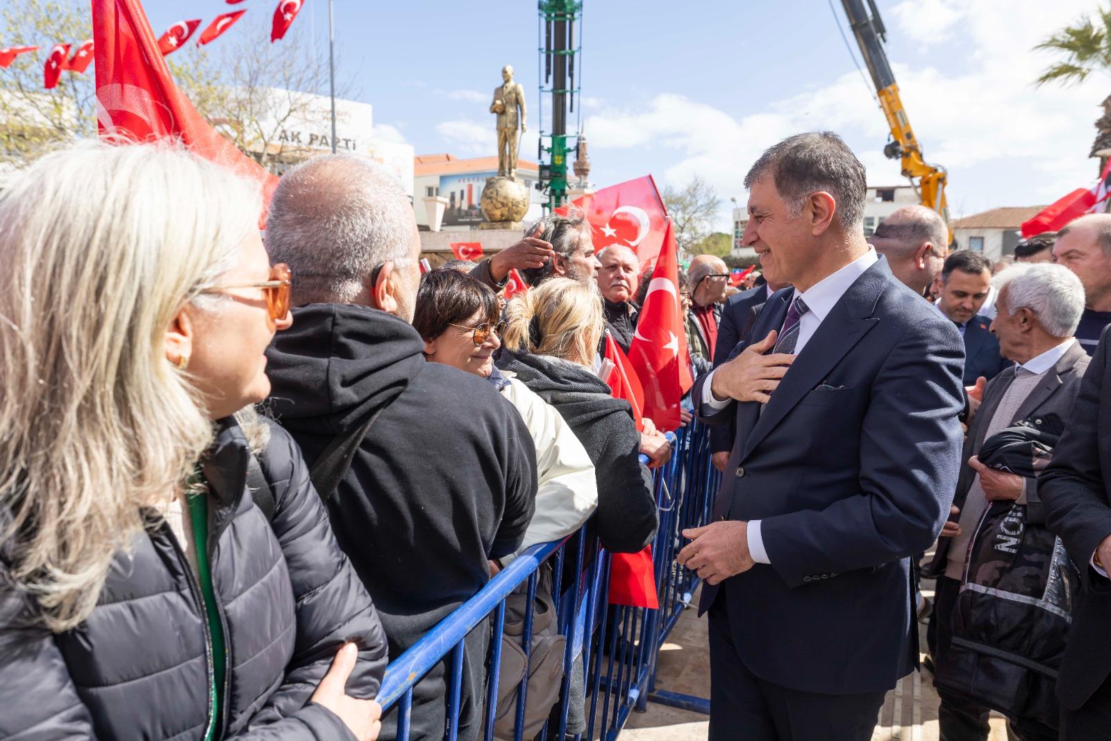Törende konuşan İzmir Büyükşehir Belediye Başkanı Dr. Cemil Tugay, “İzmir, 8 bin 500 yıllık tarihiyle, binlerce yıldır günümüze kadar gelen değerleriyle bir cumhuriyet kentidir. Bizlerin her zaman yurttaşı olmaktan gurur duyduğumuz bir kenttir. Bu kentin gururu halkından, insanından, tarihinden, değerlerinden geliyor. Bizler de bu değerlerin temsilcileri olarak, halkımızdan ve partimizden güç alarak yolumuza devam ediyoruz” dedi.