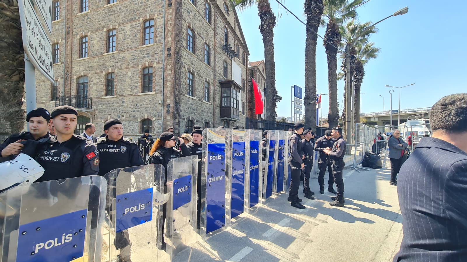 Mülkiyeti İzmir Büyükşehir Belediyesi’ne ait olan ancak Vakıflar Genel Müdürlüğü tarafından el konulmak istenen Meslek Fabrikası binası, sabah saatlerinde polis ablukasına alındı. Dünya Sağlık Örgütü’nün “Tek Sağlık Zirvesine” konuşmacı olarak davet edildiği için yurt dışında bulunan İzmir Büyükşehir Belediye Başkanı Dr. Cemil Tugay’ın akşam saatlerine doğru İzmir’de olacağı bildirildi.