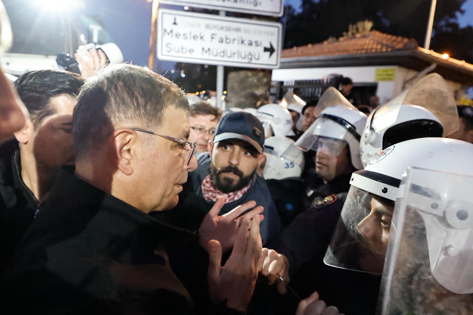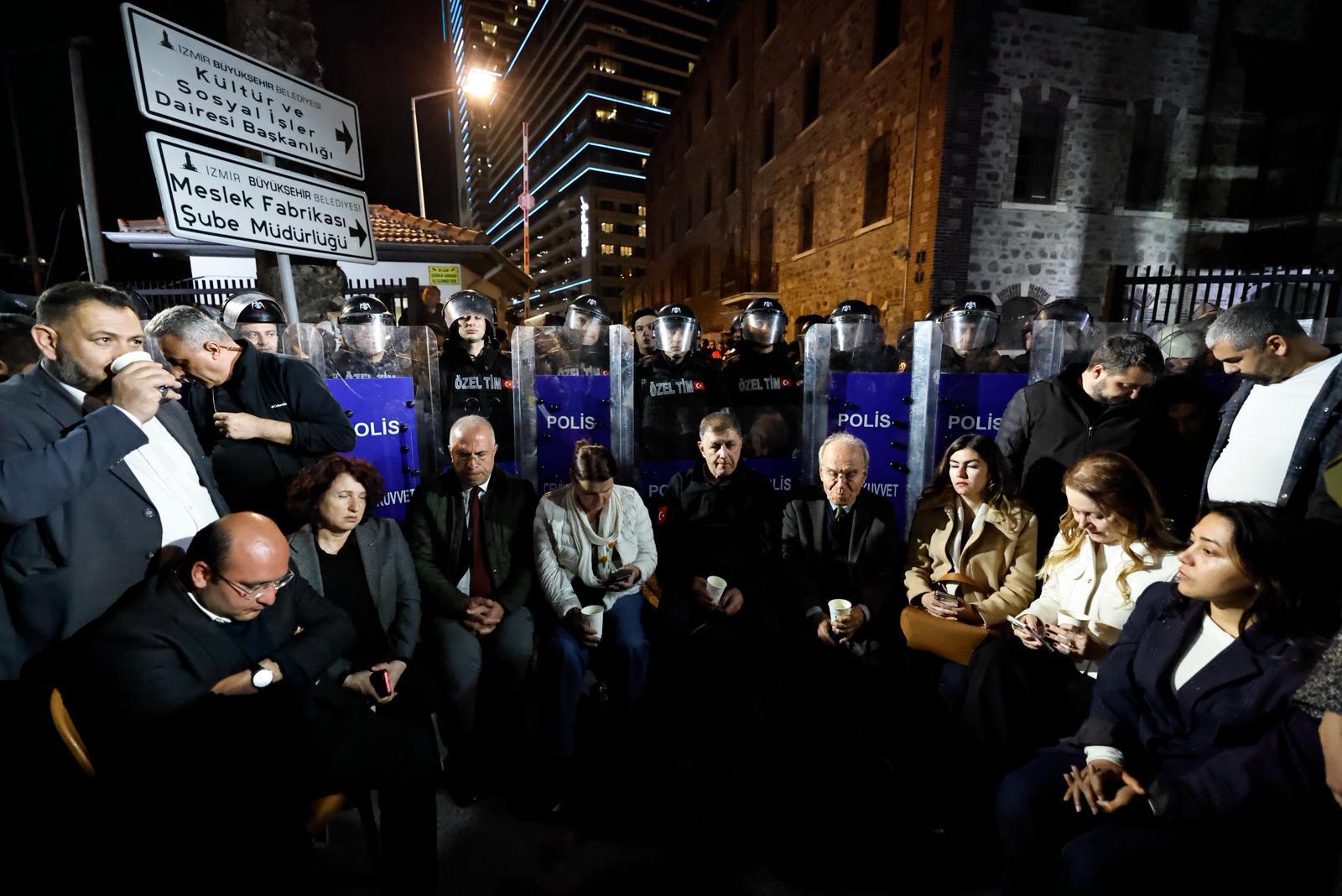Açıklamanın ardından Başkan Cemil Tugay Meslek Fabrikası’ndaki polis barikatının önünde oturarak nöbet başlattı. Belediye başkanları, milletvekilleri, meclis üyeleri ve siyaset dünyasının bir çok önemli ismiyle birlikte vatandaşlar Başkan Tugay’ı yalnız bırakmadı.