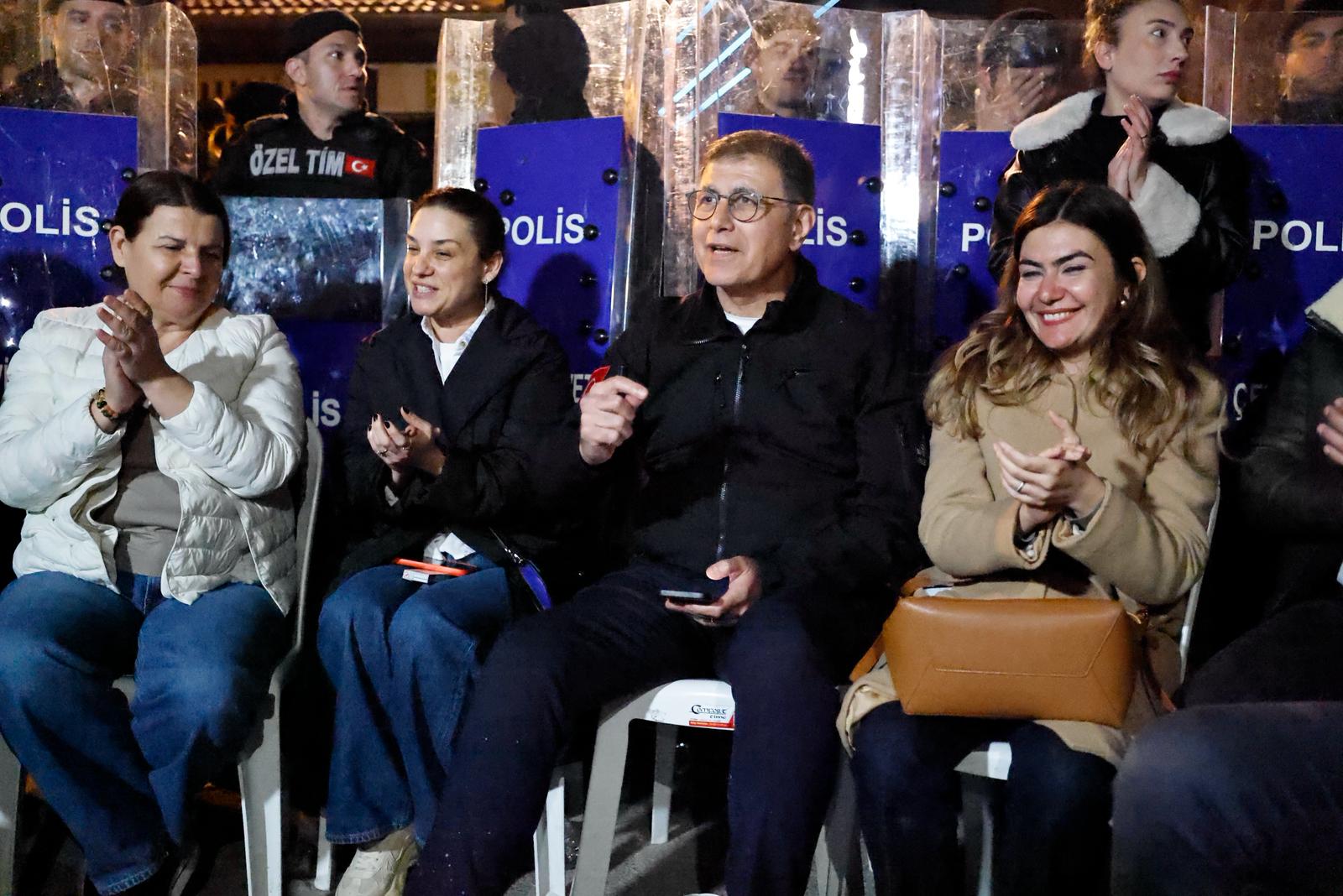 Bütün gece bina önünde olduklarını belirten Başkan Tugay, “İl başkanımız, bazı ilçe belediye başkanlarımız, meclis üyelerimiz ve partililerimiz burada. Kararlılığımızı göstermek için buradayız. Bu süreç hepimizi zorluyor ancak birilerinin buna karşı durması gerektiğine inanıyorum. Çünkü tümüyle yanlış ve haksız olan bu tutuma karşı net bir şekilde ‘hayır’ denilmesi gerekiyor. Biz yalnızca bu binanın korunması ve elde tutulması için değil, benzer durumların tekrar yaşanmaması için de çaba gösteriyoruz. Umuyorum ki bir sonuca ulaşırız. Ancak bu kararlı duruşun sürmesi gerekiyor. Daha fazla desteğe ihtiyaç duyduğumuz da bir gerçek. Buna rağmen, gerekirse tek başıma da devam edeceğim. Gücümüz yettiğince buradayız” dedi.