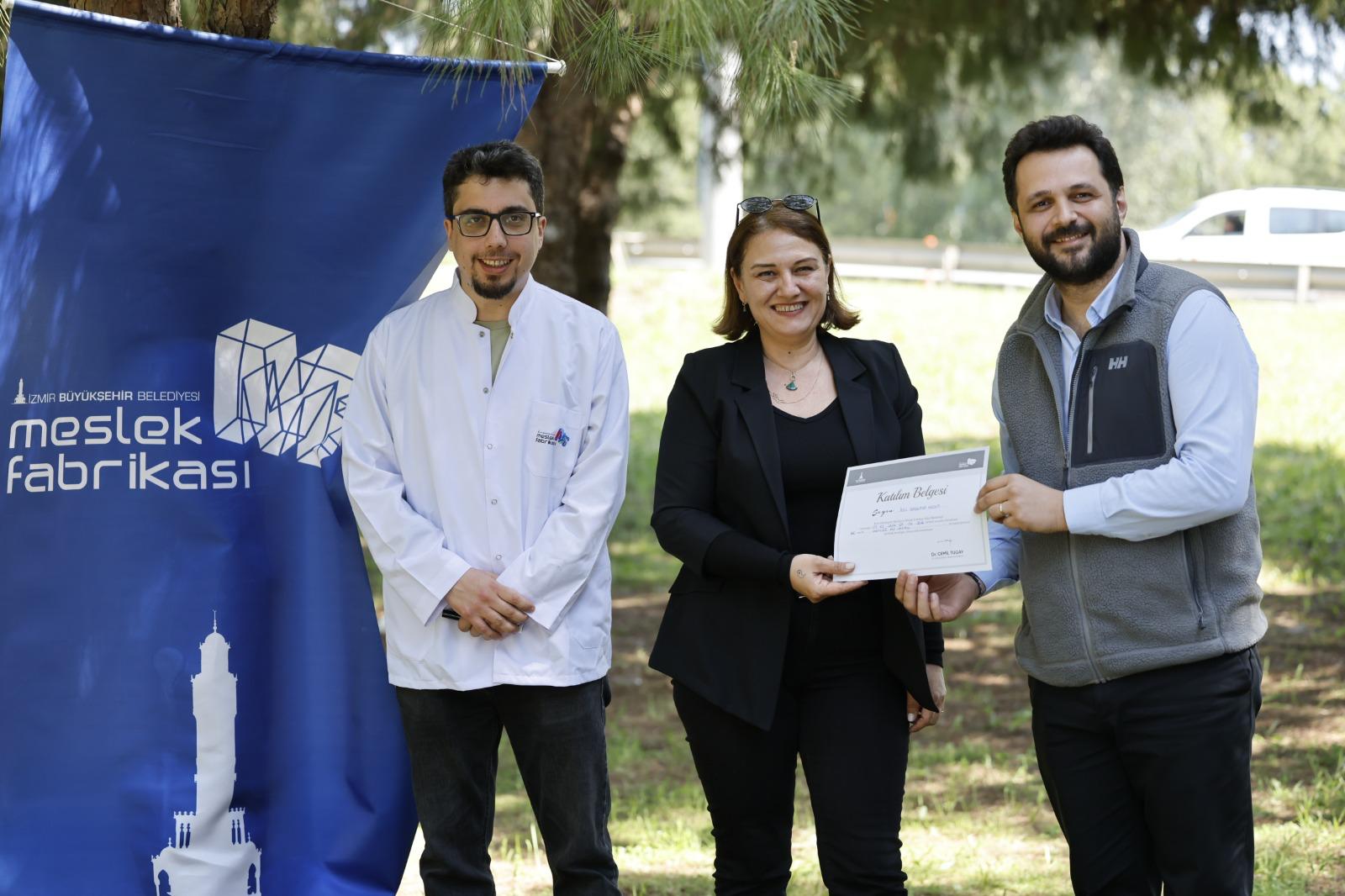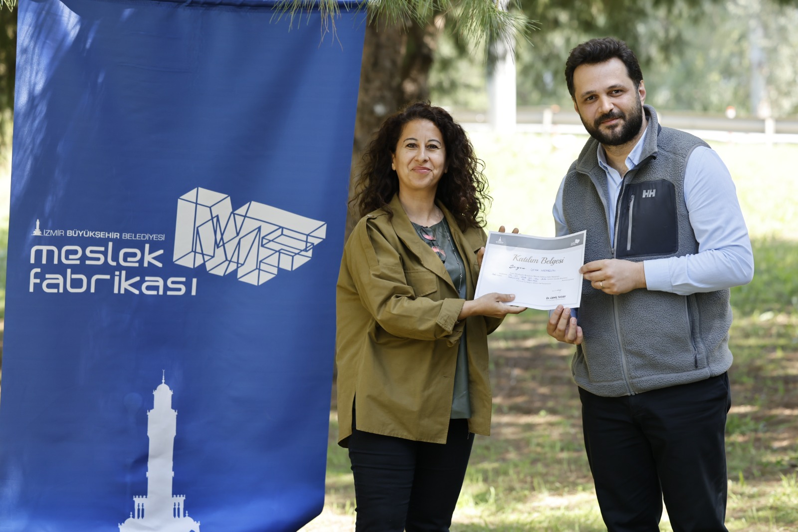 Mezun olan kursiyerlerden Şeyda Karaarslan da bugün eğitimini tamamlayan isimler arasında yer aldı. Meslek Fabrikası’nın İzmir’e önemli katkılar sunduğunu belirten Karaarslan, “İnsanlar burada meslek edinip bunu günlük yaşamlarında uygulayabiliyor ve gelir elde edebiliyor. Farklı yaş gruplarına hitap eden, çok sayıda kurs seçeneği sunan çok değerli bir oluşum. Bu nedenle Meslek Fabrikası’na sahip çıkmak için buradayız” dedi.