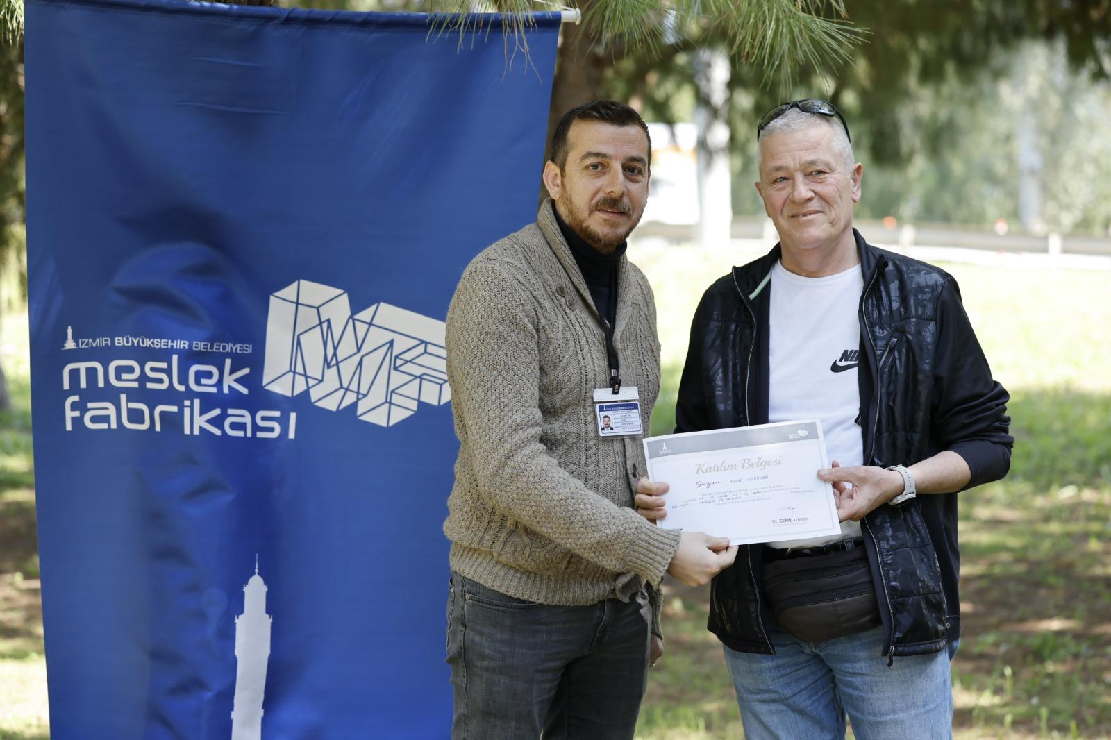 Kursiyerlerden Aslı Başkaya Koska, çok güzel bir kursu tamamladıklarını söyledi. Kamudan emekli olduğunu belirten Koska, “Eskiden çalıştığımız için gelirimiz vardı ancak hayallerimizi gerçekleştirecek zamanımız yoktu. Şimdi emekliyiz; emekli maaşlarının durumu da ortada. Bu süreçte Meslek Fabrikası, hayallerimizi gerçekleştirmemiz için bize büyük destek oldu. Birçok insan gibi bu tür kurslar için ayrıca bütçe ayıramıyoruz. A2 seviyesini alabilmek için dilekçe verdik ve bu imkan bize sağlandı” dedi. Bu oluşumdan çok memnun olduğunu ifade eden Koska, “Meslek Fabrikası’nın İzmir’e çok yakıştığını düşünüyorum ve kıymetini bilmemiz gerektiğine inanıyorum. Gençler için önemli bir istihdam imkanı sunuyor ki bu da çok değerli. Ülkemizde işsizlik önemli bir sorun. İnsanların hiçbir ücret ödemeden böyle bir imkana ulaşabilmesi büyük bir fırsat. Bu nedenle sahip çıkmalı ve devam etmesini sağlamalıyız” diye konuştu.