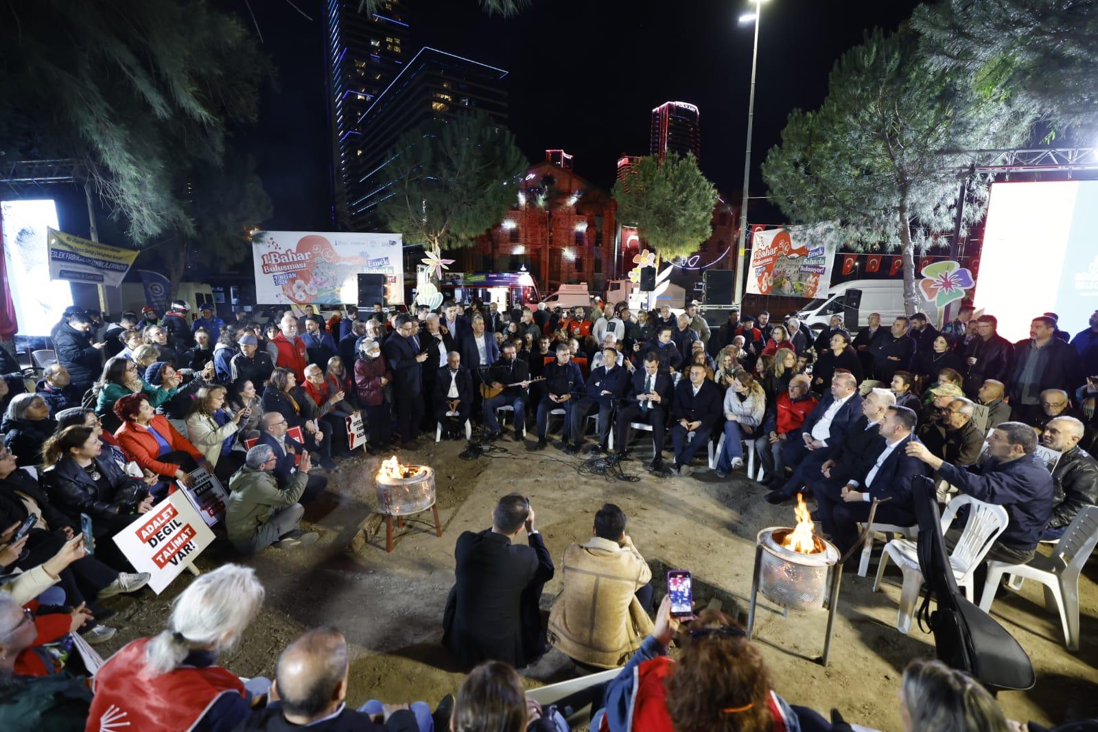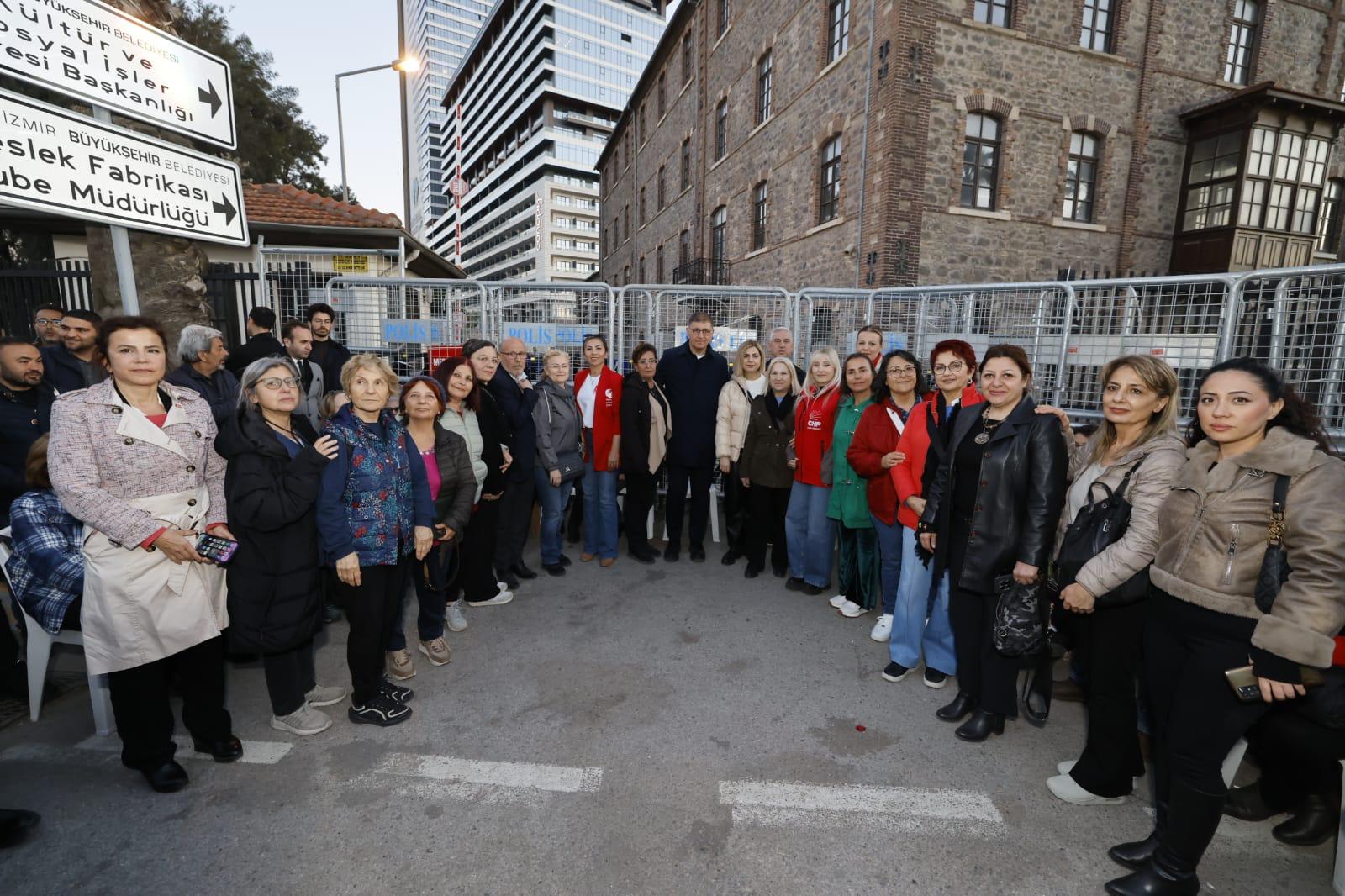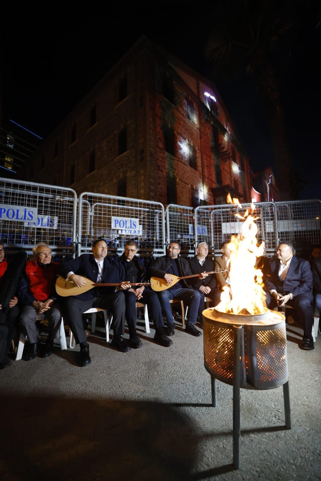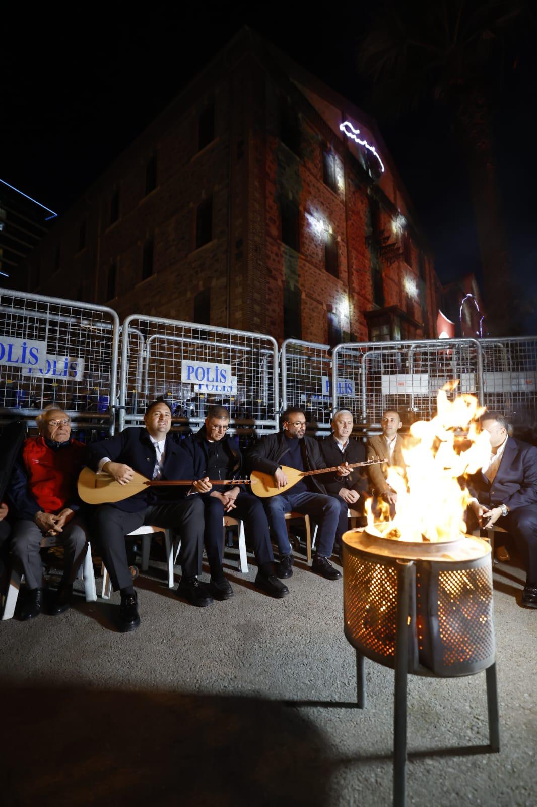 İzmir Büyükşehir Belediyesi’ne ait Meslek Fabrikası'na yönelik el koyma girişimine karşı başlatılan nöbet sürüyor. Başkan Dr. Cemil Tugay öncülüğünde bir araya gelen yurttaşların, siyasiler ve sanatçıların söylediği türküler haksızlığa karşı ses oldu.