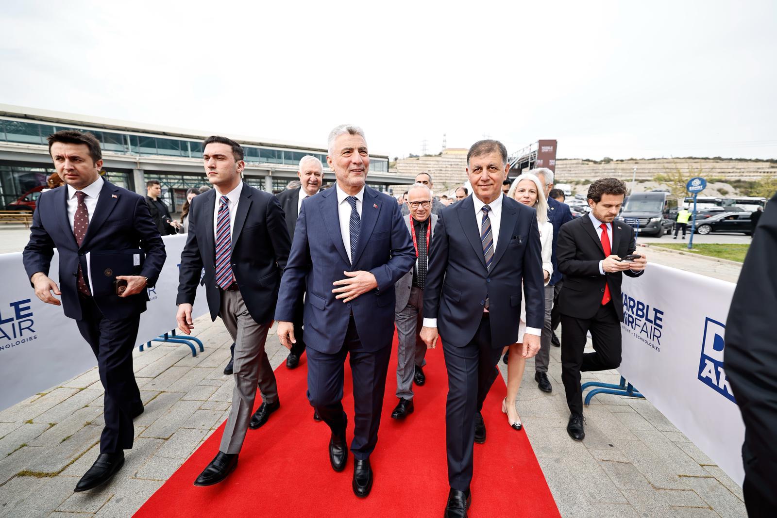 Dünya doğal taş sektörünün öncü buluşması Marble İzmir - Uluslararası Doğaltaş ve Teknolojileri Fuarı, 31’inci kez kapılarını açtı. İzmir Büyükşehir Belediyesi’nin ev sahipliğinde, İZFAŞ tarafından Fuar İzmir’de düzenlenen 31. Marble İzmir, sektörün profesyonellerini bir araya getirdi. Açılış törenine İzmir Büyükşehir Belediye Başkanı Dr. Cemil Tugay ve eşi Öznur Tugay’ın yanı sıra Ticaret Bakanı Prof. Dr. Ömer Bolat, Ticaret Bakan Yardımcısı Özgür Volkan Ağar, Enerji ve Tabii Kaynaklar Bakan Yardımcısı Abdullah Tancan, İzmir Valisi Dr. Süleyman Elban, Afyonkarahisar Valisi Dr. Naci Aktaş, Eskişehir Valisi Dr. Erdinç Yılmaz, Cumhuriyet Halk Partisi İzmir Milletvekili Seda Kaya Ösen, il ve ilçe belediye başkanları, siyasi parti temsilcileri, büyükelçiler, oda ve birlik başkanları, sivil toplum kuruluşu temsilcileri ile çok sayıda sektör profesyoneli katıldı. Açılış töreni, 31 yıldır dünya fuarcılığında marka haline gelen Marble İzmir’in tarihini, gücünü ve doğal taş sektörünü anlatan etkileyici bir performansla başladı. Sinematografik anlatı, sanatçıların büyüleyici müzik ve dans gösterileriyle zenginleşti.