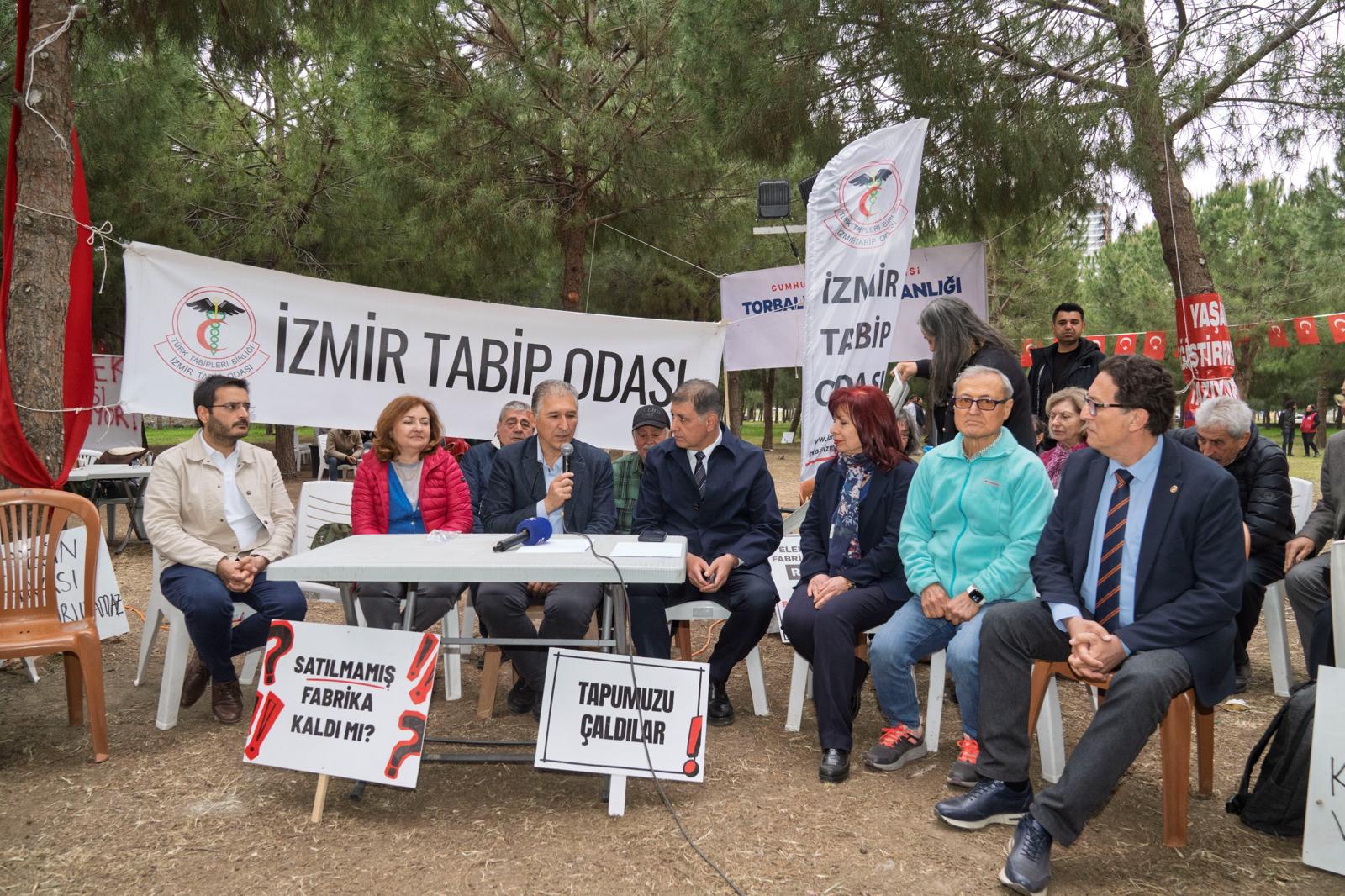 İzmir Büyükşehir Belediye Başkanı Dr. Cemil Tugay’ın Meslek Fabrikası’na el koyma girişimine karşı başlattığı nöbete destek büyüyor. İzmir Tabip Odası’nın “Sağlık Forumu” ile katıldığı süreçte mülkiyet hakkının temel bir hukuk ilkesi olduğu vurgulanırken, yaşananların “normalleştirilmemesi gerektiği” mesajı öne çıktı.