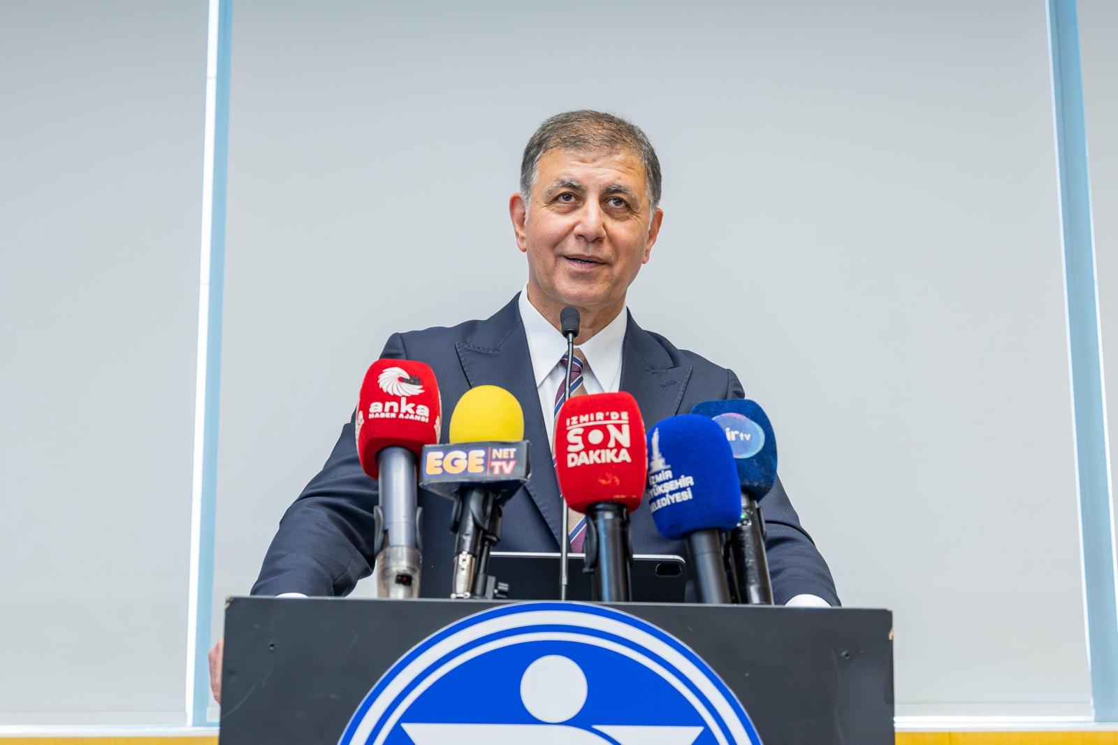 Konuşmaların ardından İzmir Büyükşehir Belediye Başkanı Tugay, İZTO Başkanı Mahmut Özgener’e Kırmızı Bayrak takdim etti. Ardından katılımcılarla birlikte İZTO binası önüne bayrak asıldı.