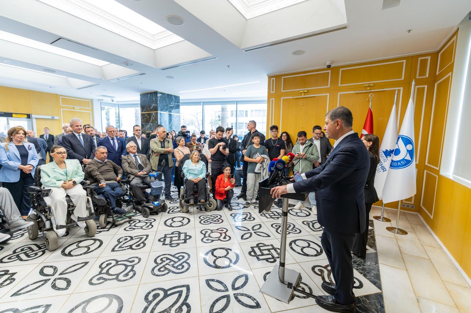 İzmir’de herkesin ve her kesimin hem fiziki hem de duygusal anlamda birbirine ulaşabileceği yakınlıkta olduğunu vurgulayan Başkan Tugay, “İzmir ayrımcılık yapmaz, herkesi eşitler. İzmir Büyükşehir Belediyesi olarak sürdürdüğümüz Kırmızı Bayrak uygulaması, kentimizin bu karakteristik özelliğine dayanıyor. Çünkü biz, erişilebilirliği bir ayrıcalık değil temel hak olarak görüyoruz” ifadelerini kullandı. Kırmızı Bayrak uygulamasının 2013 yılında düzenlenen Engelsizmir Kongresi’nin en önemli çıktılarından biri olduğunu hatırlatan Başkan Tugay, “Türkiye’de ilk kez İzmir’in hayata geçirdiği bu model, bir erişilebilirlik markasıdır. Kırmızı Bayrak uygulaması; engelli bireylerin, kamuya açık alanlarda hizmet veren tüm kurumların mekânlarına ve ayrıca ulaşım araçlarına engelsiz erişebilmesini teşvik ediyor” bilgisini verdi.