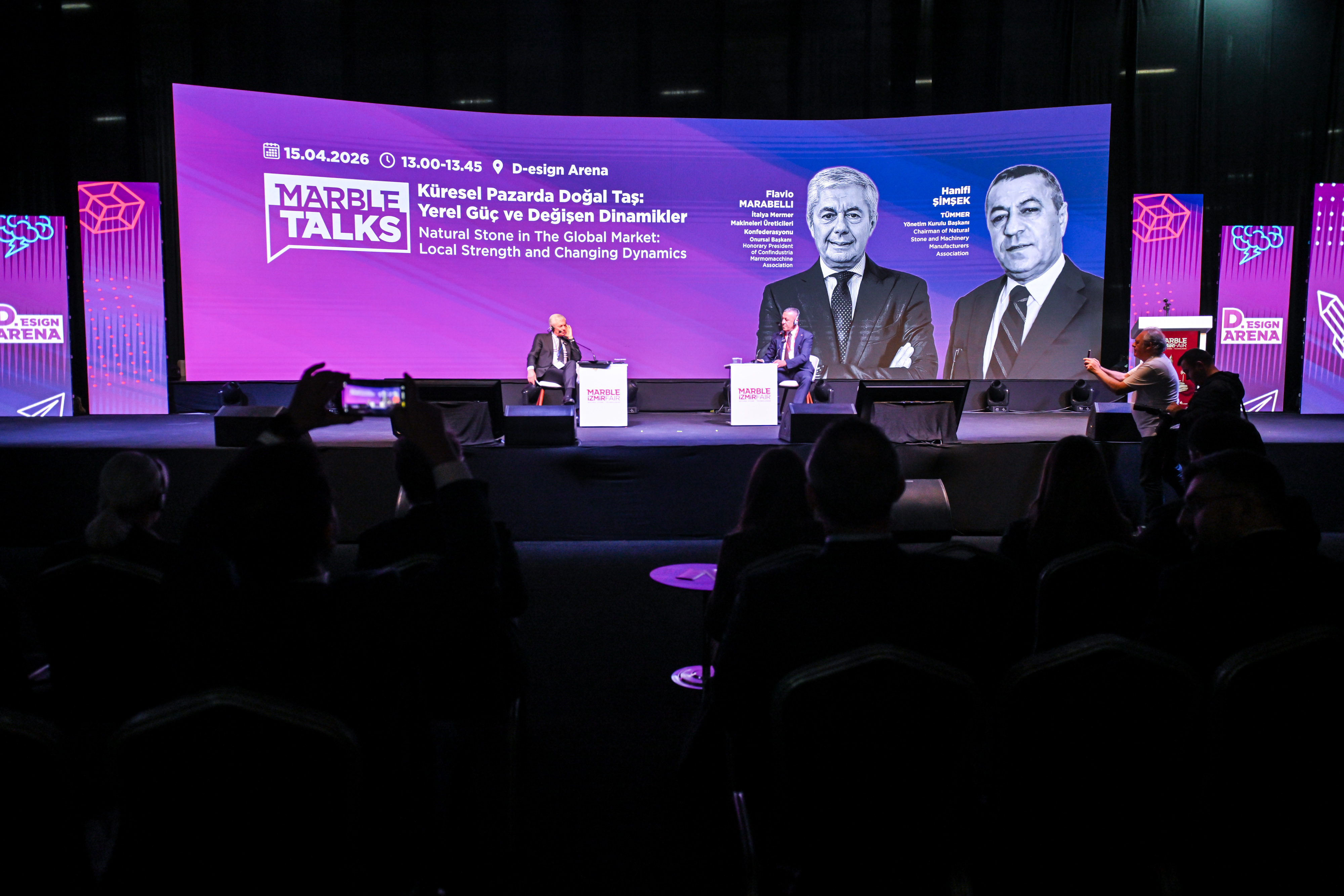 İzmir Büyükşehir Belediyesi ev sahipliğinde. İZFAŞ tarafından düzenlenen Marble İzmir kapsamında gerçekleştirilen Marble Talks’ın öne çıkan oturumlarından biri, dünya doğal taş sektörünün iki ana aktörü Türkiye ve İtalya’yı aynı sahnede buluşturdu. “Küresel Pazarda Doğal Taş: Yerel Güç ve Değişen Dinamikler” başlıklı oturumda, TÜMMER Yönetim Kurulu Başkanı Hanifi Şimşek ile İtalya Mermer Makineleri Üreticileri Konfederasyonu Onursal Başkanı Flavio Marabelli sektörün mevcut durumu ve geleceğine ilişkin değerlendirmelerde bulundu.