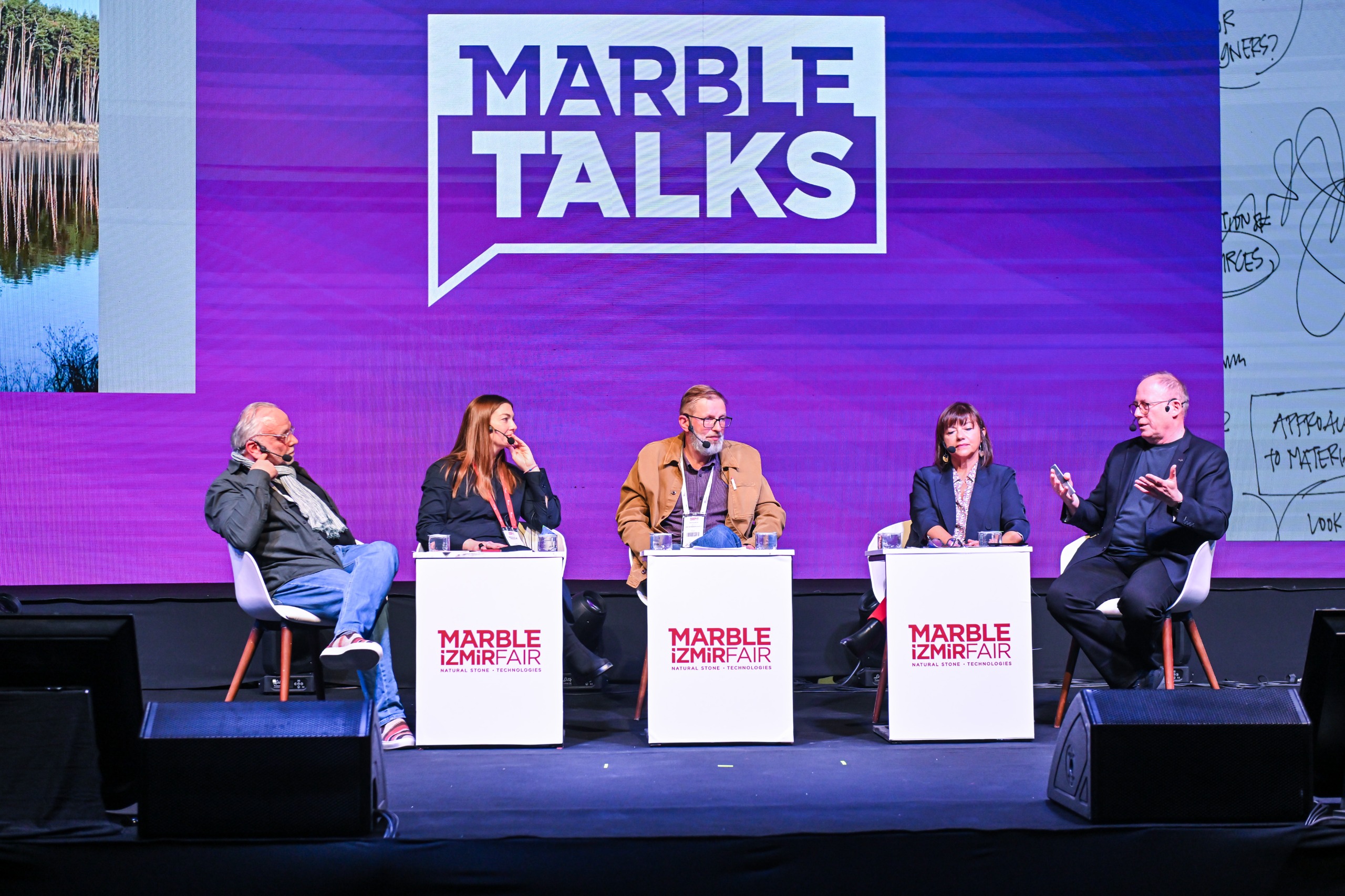 Marble İzmir - 31. Uluslararası Doğaltaş ve Teknolojileri Fuarı, bine yakın katılımcısı, 100’ün üzerinde ülkeden gelen binlerce profesyonel ziyaretçisi ve ortaya çıkardığı ticaret hacminin yanı sıra düzenlenen Marble Talks oturumları ile de yoğun ilgi görüyor. D Hol D-Design Arena sahnesinde gerçekleştirilen oturumlarda mimarlar, iç mimarlar, tasarımcılar ve akademisyenler, doğal taşın mimari projelerdeki kullanımına ilişkin bilgi ve deneyimlerini paylaşıyor.