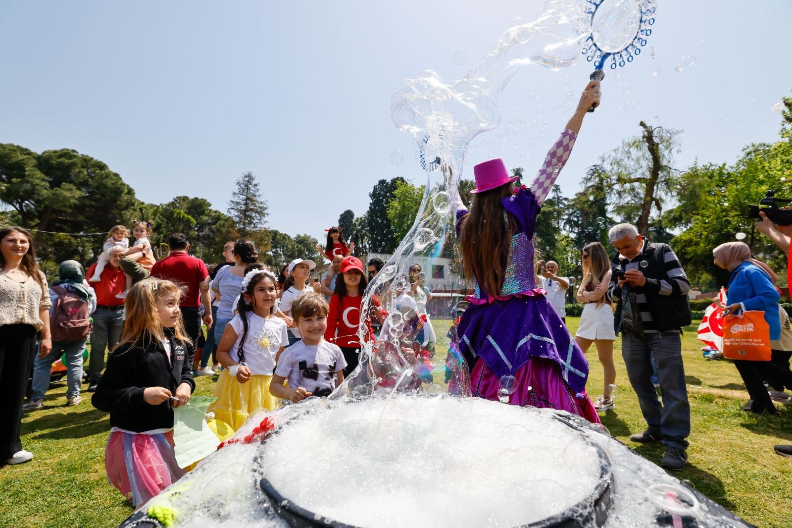 İzmir’de 23 Nisan Ulusal Egemenlik ve Çocuk Bayramı, İzmir Büyükşehir Belediyesi’nin kentin dört bir yanında  düzenlediği etkinliklerle coşkuyla kutlanıyor. 1-22 Nisan tarihleri arasında 17 ilçede gezici programları  çocuklarla buluşturan İzmir Büyükşehir Belediyesi, finali Kültürpark’ta yapılacak kutlamayla taçlandıracak. İzmir Büyükşehir Belediyesi Kadın ve Aile Hizmetleri Dairesi Başkanlığı’na bağlı Çocuk Çalışmaları Şube Müdürlüğü koordinasyonunda, Kültür, Sanat ve Sosyal İşler Dairesi Başkanlığı’nın paydaşlığında gerçekleştirilecek etkinliklerde; çocukların kendilerini ifade edebileceği ve birlikte vakit geçirebileceği alanlar oluşturulacak.