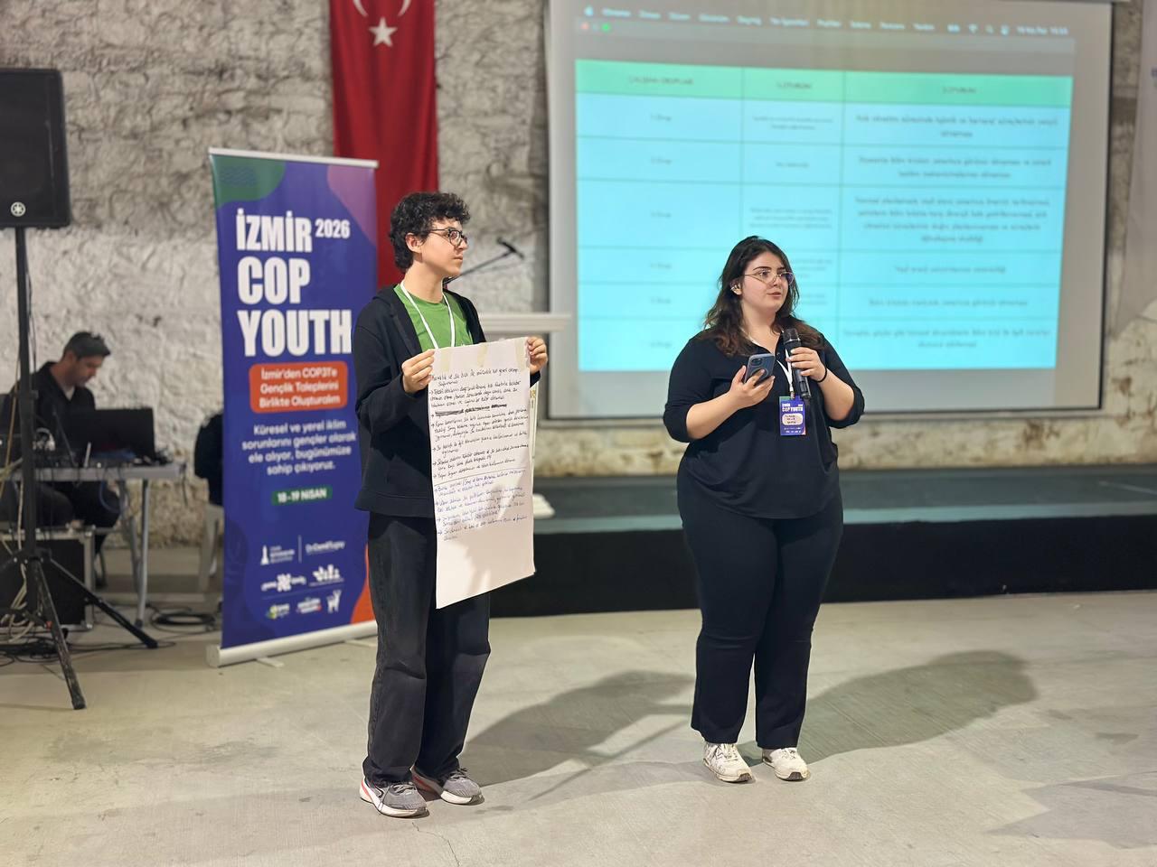 İzmir’de iklim kriziyle mücadelede gençlerin sesi yükseliyor. Türkiye’nin ev sahipliğinde 9-20 Kasım tarihlerinde Antalya’da düzenlenecek 31. Birleşmiş Milletler İklim Değişikliği Konferansı (COP31) öncesi, İzmir Büyükşehir Belediyesi’nin koordinasyonunda, Sosyal İklim Derneği’nin katkıları, Türkiye Sağlıklı Kentler Birliği ve Ceşme Vizyon Ofisi iş birliği ile İzmir COP Youth Programı düzenlendi. Konferans öncesi Türkiye’de gençlerin yerel düzeyde politika oluşturmasına yönelik gerçekleştirilen ilk örnek olma niteliği taşıyan program Tarihi Bıçakçı Han’da yapıldı. İki günlük etkinlikte bir araya gelen katılımcılar, hem İzmir’in iklim gündemini değerlendirdi hem de küresel ölçekte söz sahibi olabilecek çözüm önerileri geliştirdi. Etkinliğin açılışında konuşan İzmir Büyükşehir Belediyesi Genel Sekreter Yardımcısı Prof. Dr. Pınar Okyay, “Gençlerimizin iklim krizine dair çözüm üretme süreçlerine doğrudan katılımını çok kıymetli buluyoruz. İzmir’den yükselen bu güçlü gençlik sesi, COP31 sürecine hem yerelden hem de küresel ölçekte önemli katkılar sunacaktır” dedi.