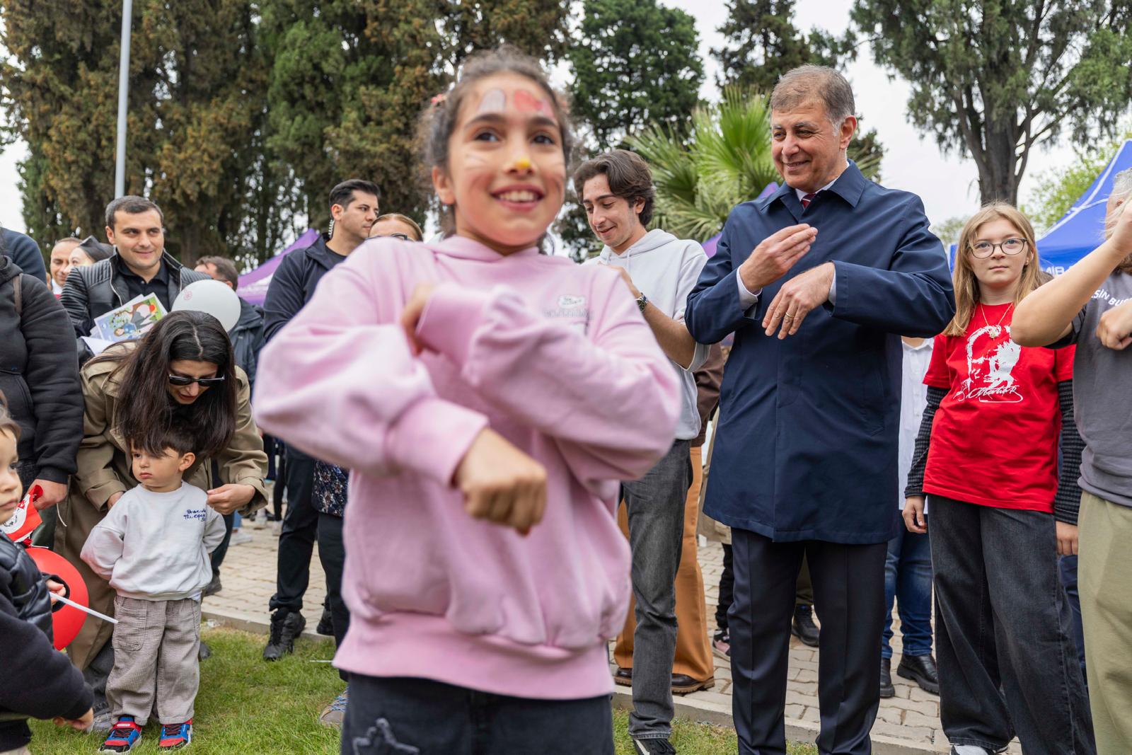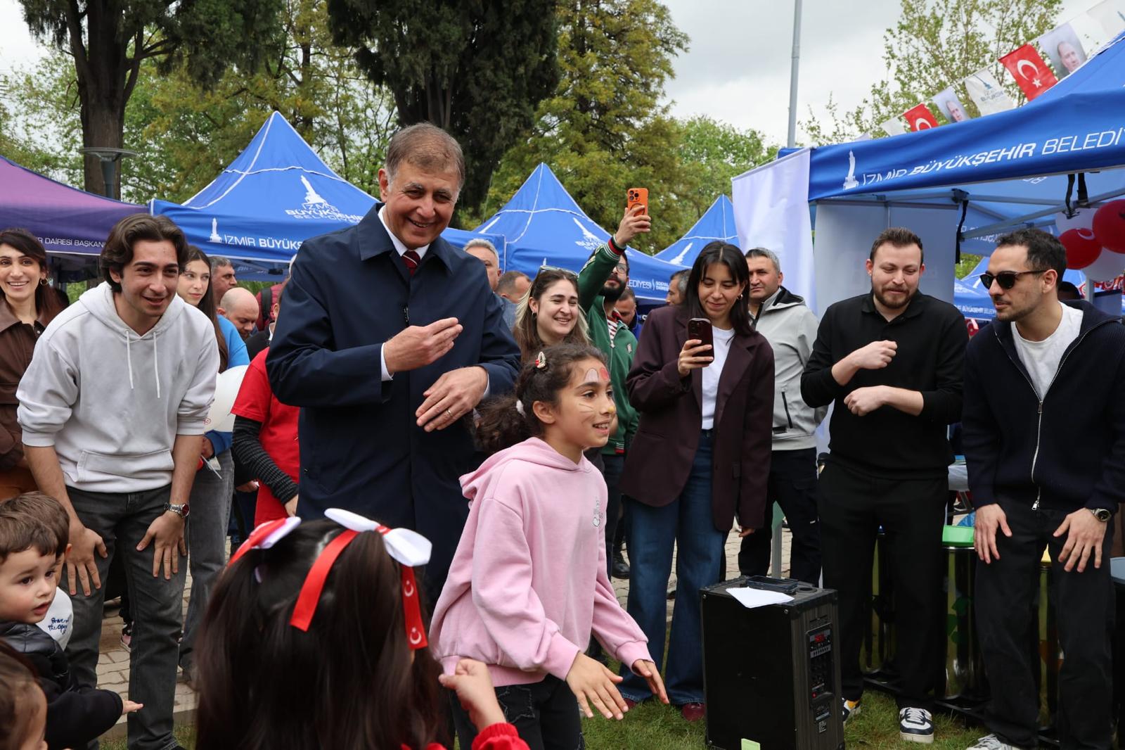Çocukların geleceği için çalışmanın önemine vurgu yapan Cemil Tugay, “Çocuklarımızın bayramını kutluyorum. Onlarla birlikte olmaktan çok mutluyum. Zaman zaman çok duygulandım. Çocuklarımız dünya güzeli ve çok iyi bir geleceği hak ediyorlar. Her biri birbirinden değerli. Ülkemizin gerçekten iyi olması gerekiyor. Çocuklarımızın geleceği için hepimiz üzerimize düşen görevleri yapmalıyız” dedi. İzmir Büyükşehir Belediyesi’nin ilgili birimleri ve sivil toplum kuruluşlarının katkılarıyla hazırlanan stantları da gezen Tugay, çocuklarla birlikte dans etti ve oyun oynadı.