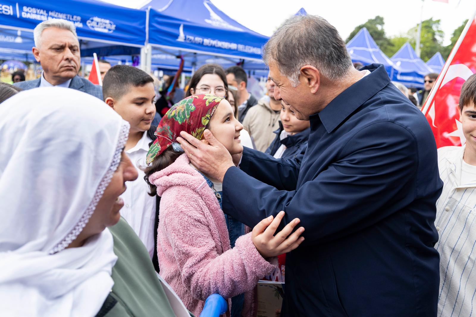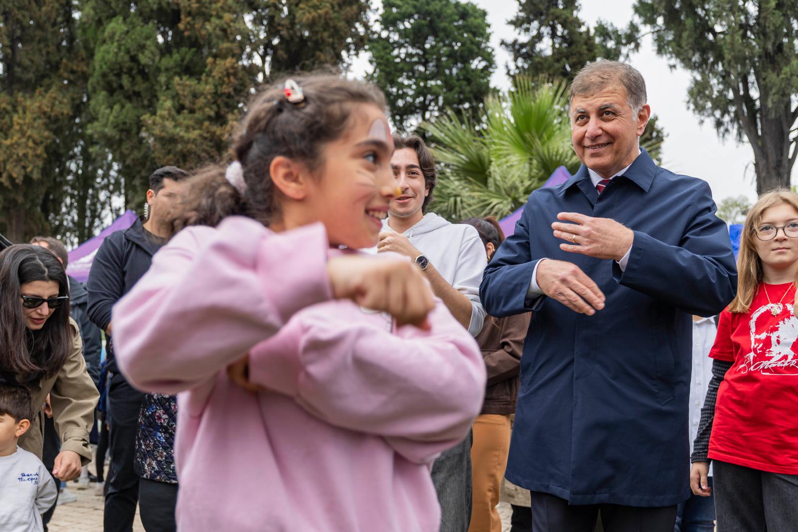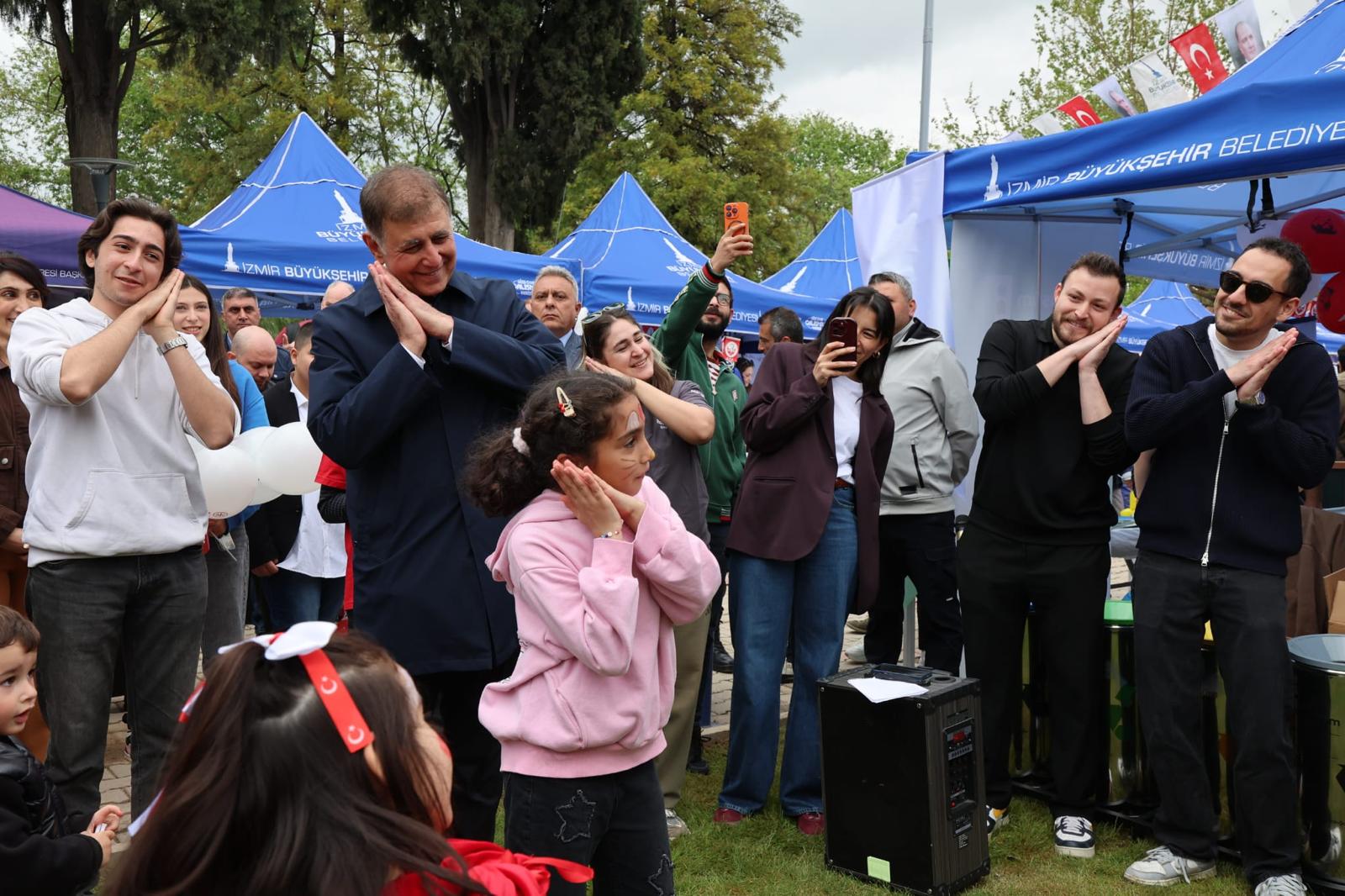 İzmir Büyükşehir Belediye Başkanı Dr. Cemil Tugay, Kültürpark’ta düzenlenen 23 Nisan etkinliklerinde çocuklarla bir araya geldi. Atölyeler, sahne gösterileri ve ikinci el pazarıyla renklenen programda çocukların bayramını kutlayan Başkan Tugay, “Sizlerle birlikte olmaktan çok mutluyum. Zaman zaman çok duygulandım. Çocuklarımız dünya güzeli... Çok iyi bir geleceği de hak ediyorlar” dedi.